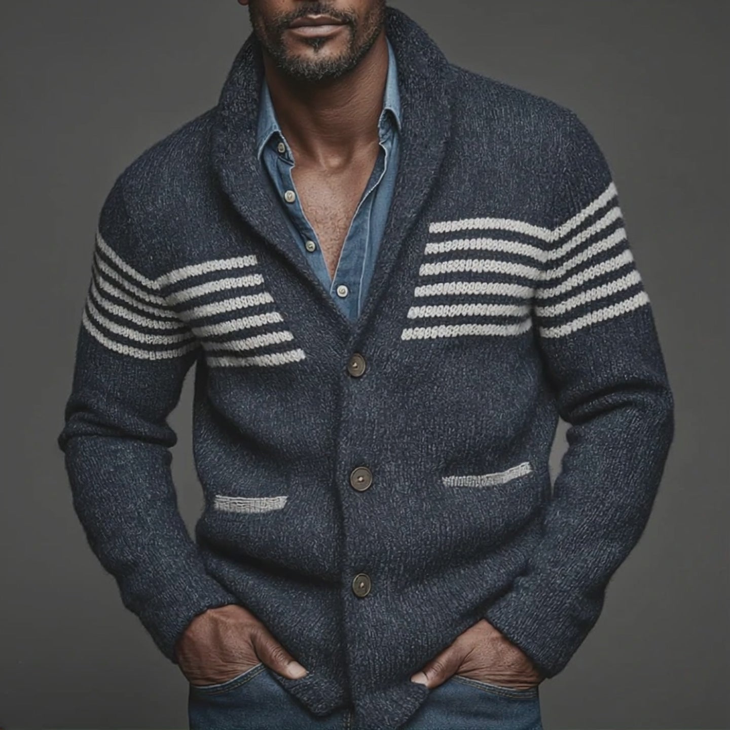 Men's Retro Casual Knit Striped Button-Up Cardigan MTA2174J6TO
