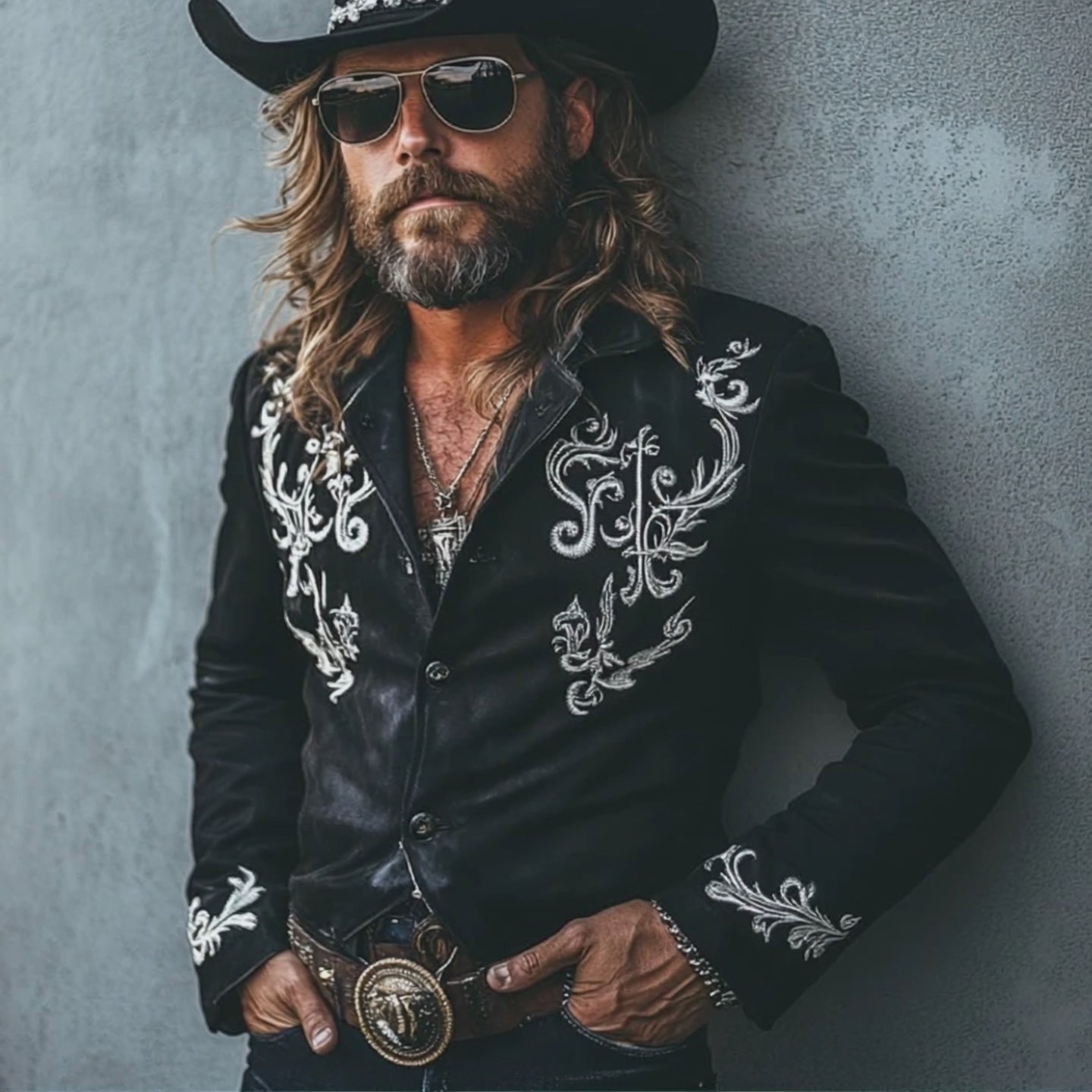 Men's Western Cowboy Style Faux Suede Embroidered Jacket MTA0186L2X