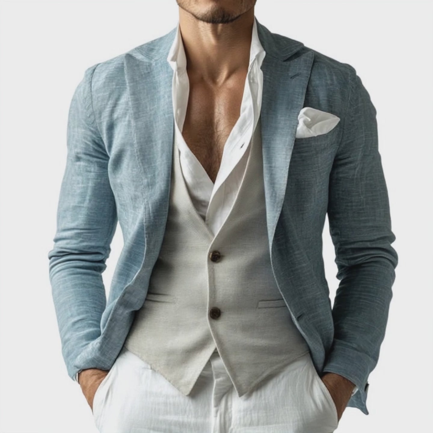 Men's Cotton-linen Blend Lapel Two-button Blazer MTA0165L0X