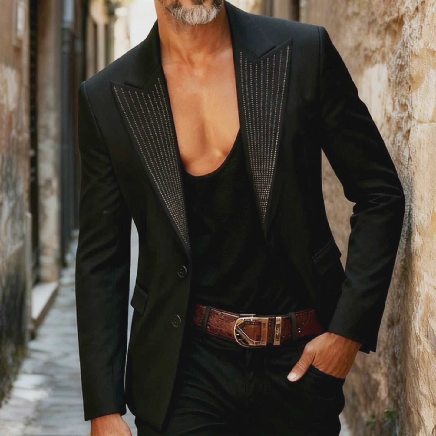 Men's Retro Casual Rhinestone Blazer MTA3061K6TO