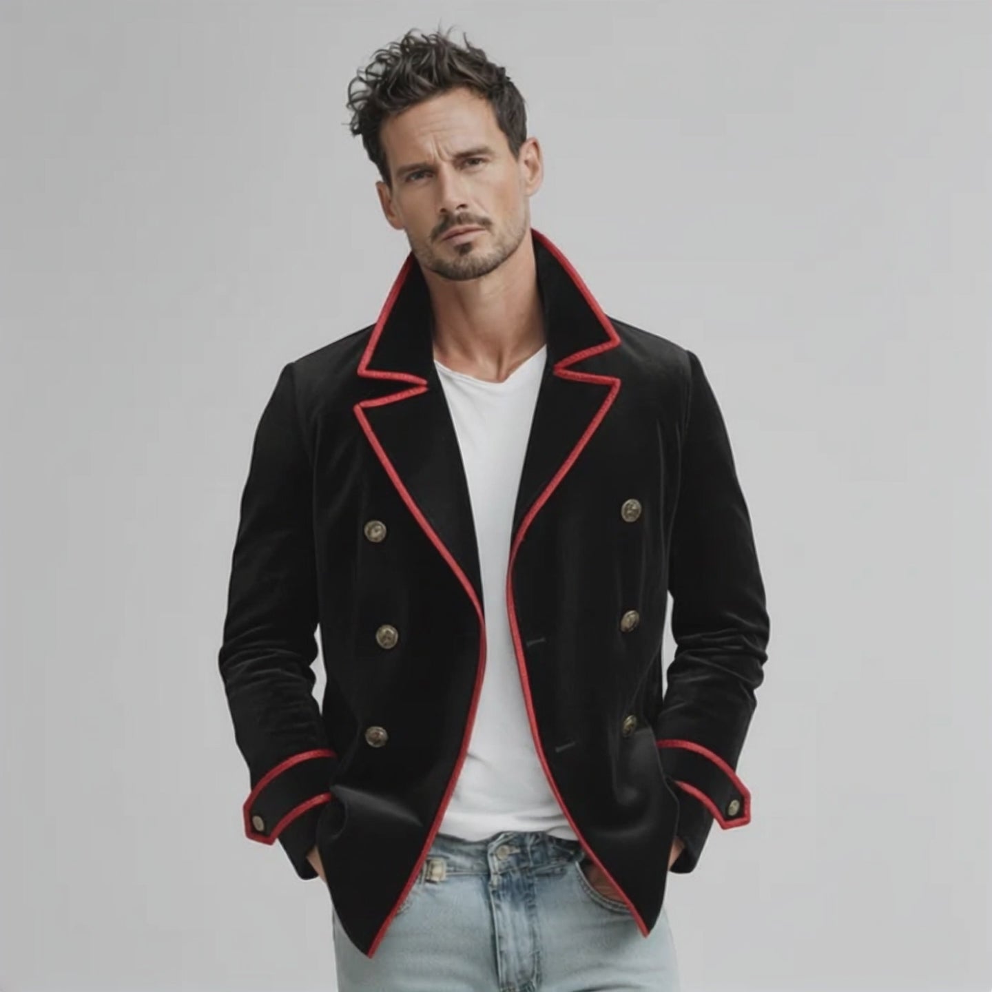 Men's Matte Velvet Lapel Double-Breasted Jacket MTA0743K3X