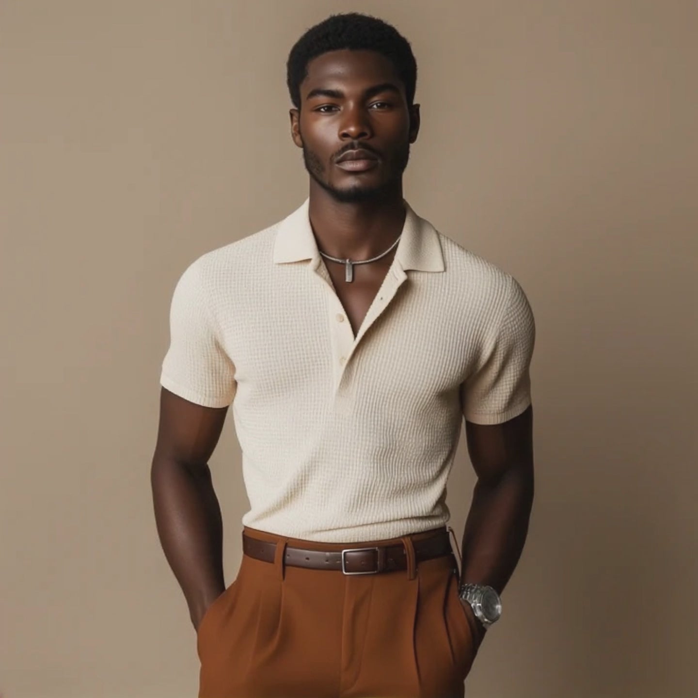 Men's Knitted Single-Breasted Short-Sleeved Polo Shirt MTA1849C2X