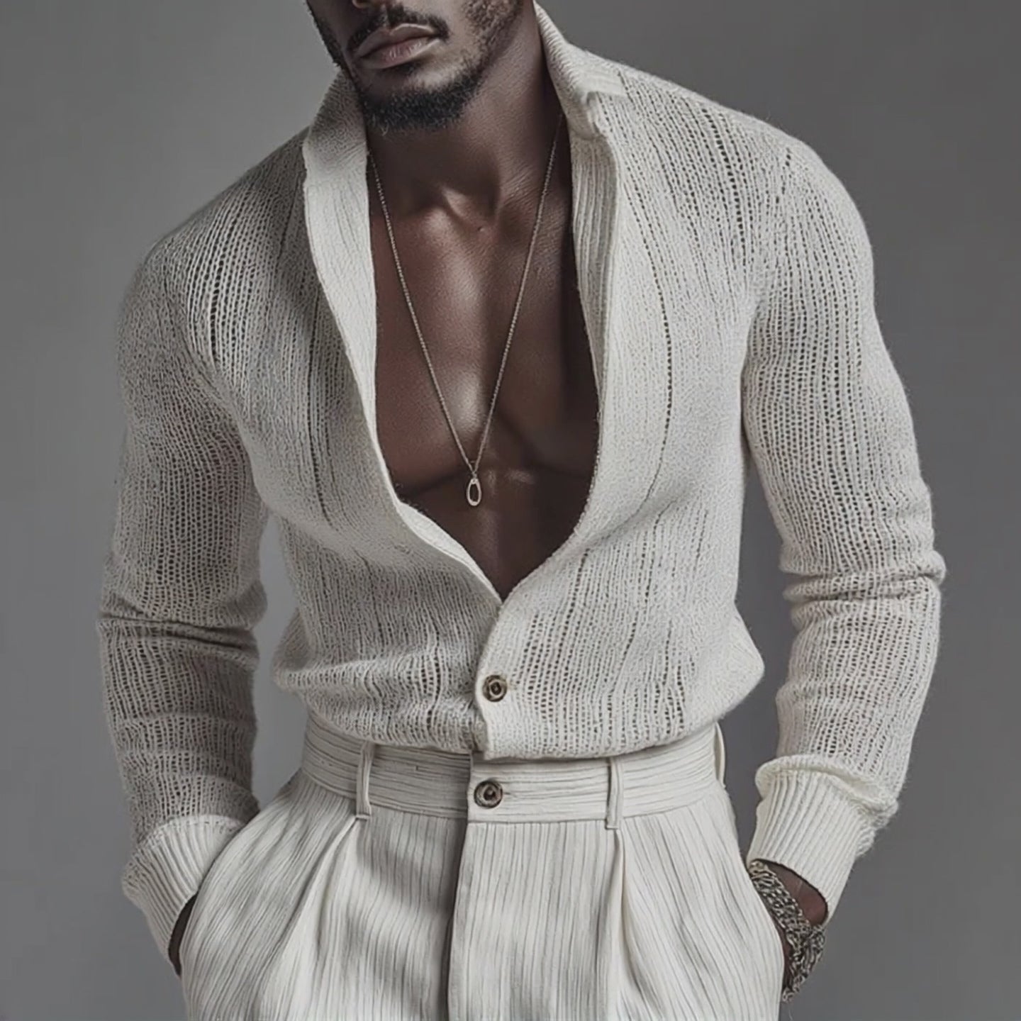 Men's Retro Casual Knit Lapel Long Sleeve Shirt MTA2594I9TO