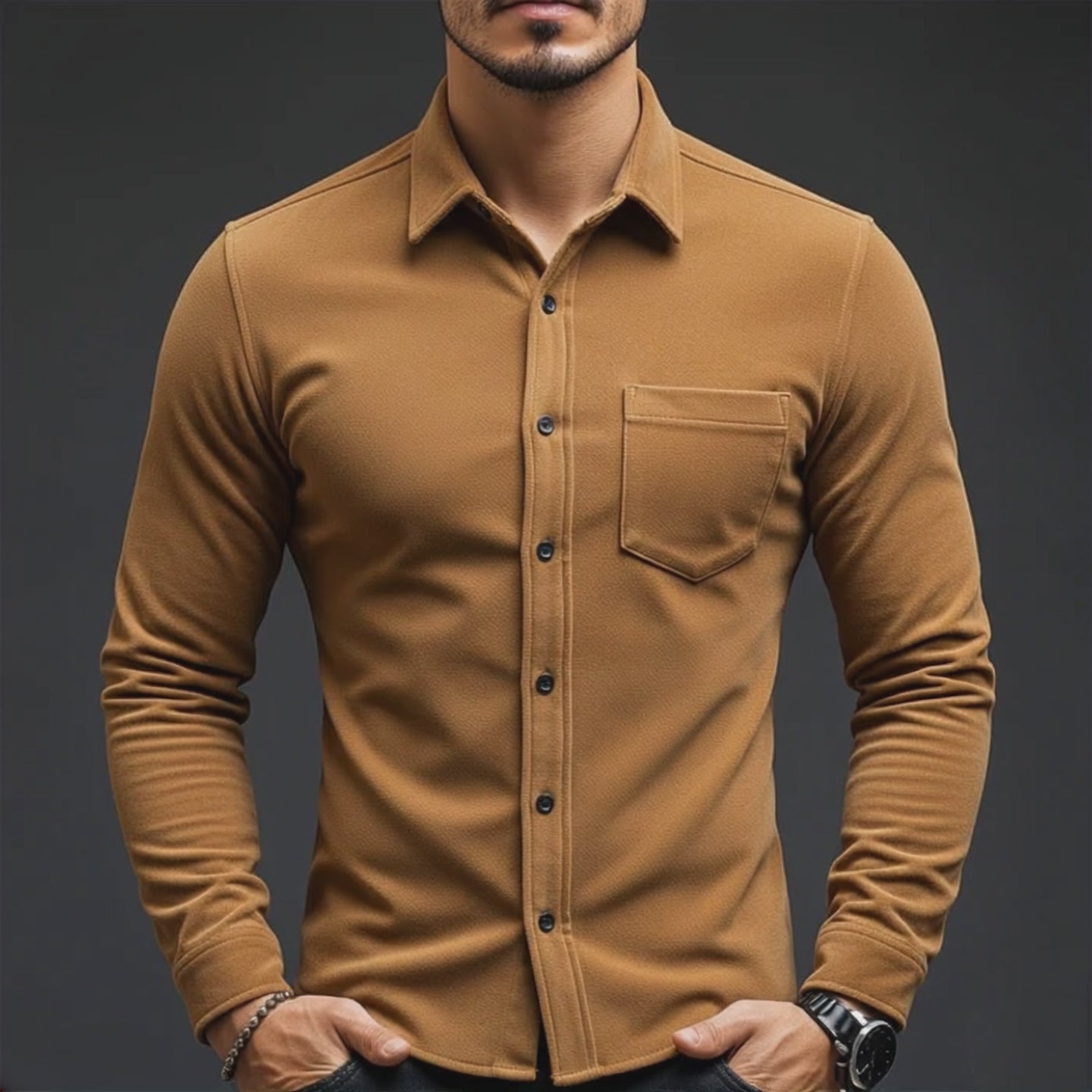 Men's Classic Casual Corduroy Stand Collar Slim Long Sleeve Shirt MTA2096J4K