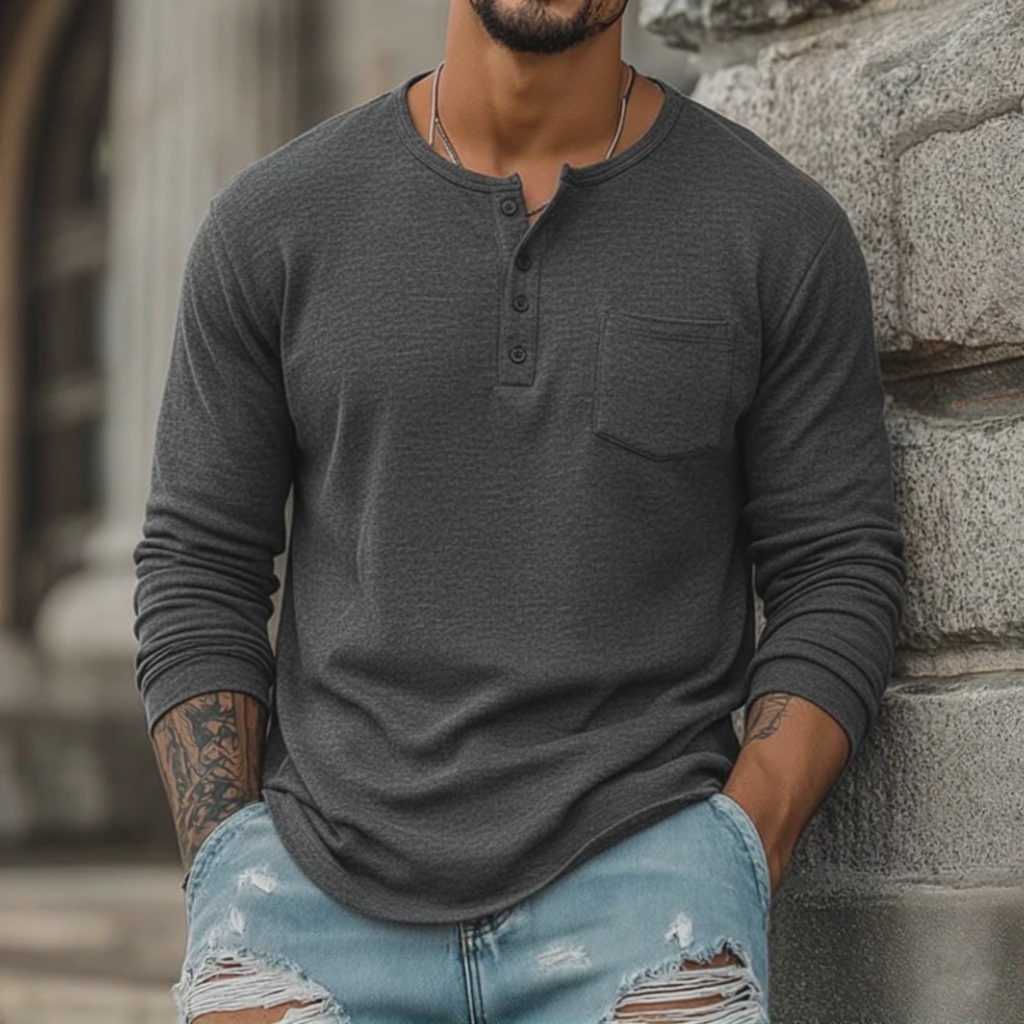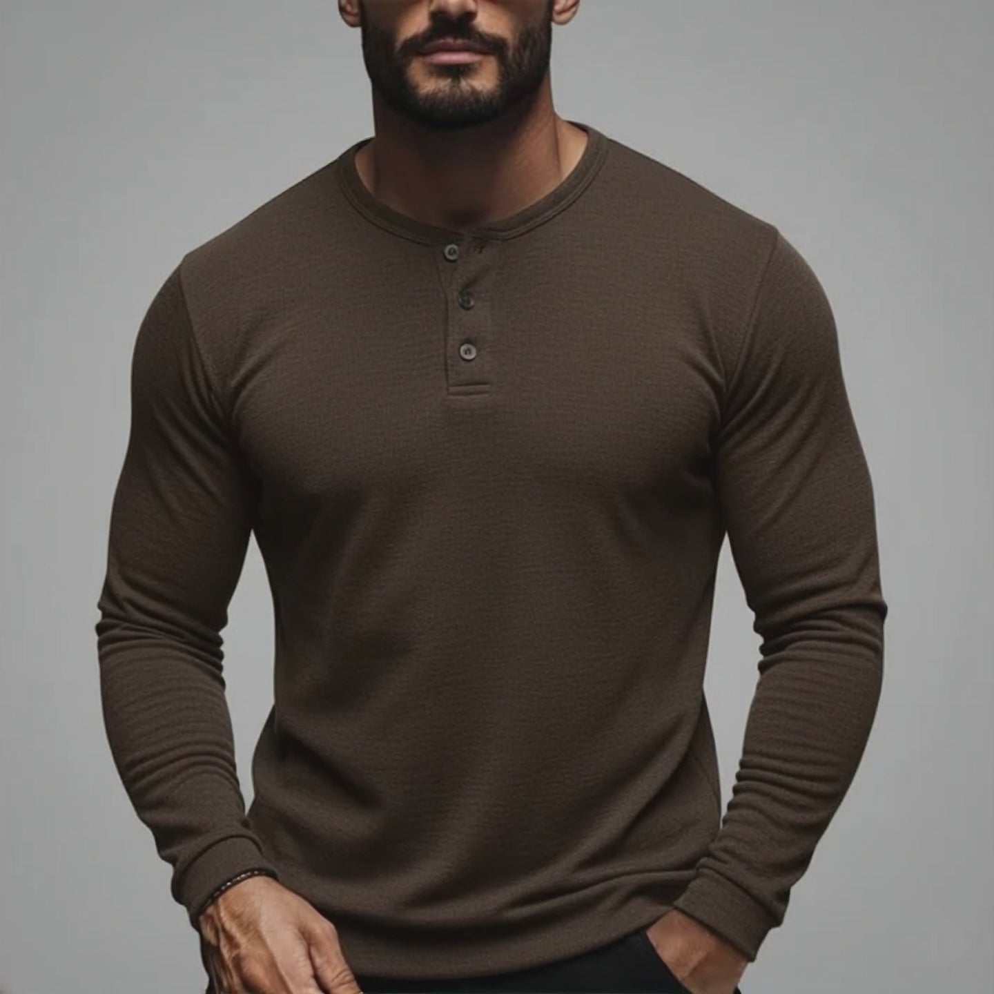 Men's Classic Henley Collar Dralon Warm Long Sleeve T-Shirt MTA2076J3K