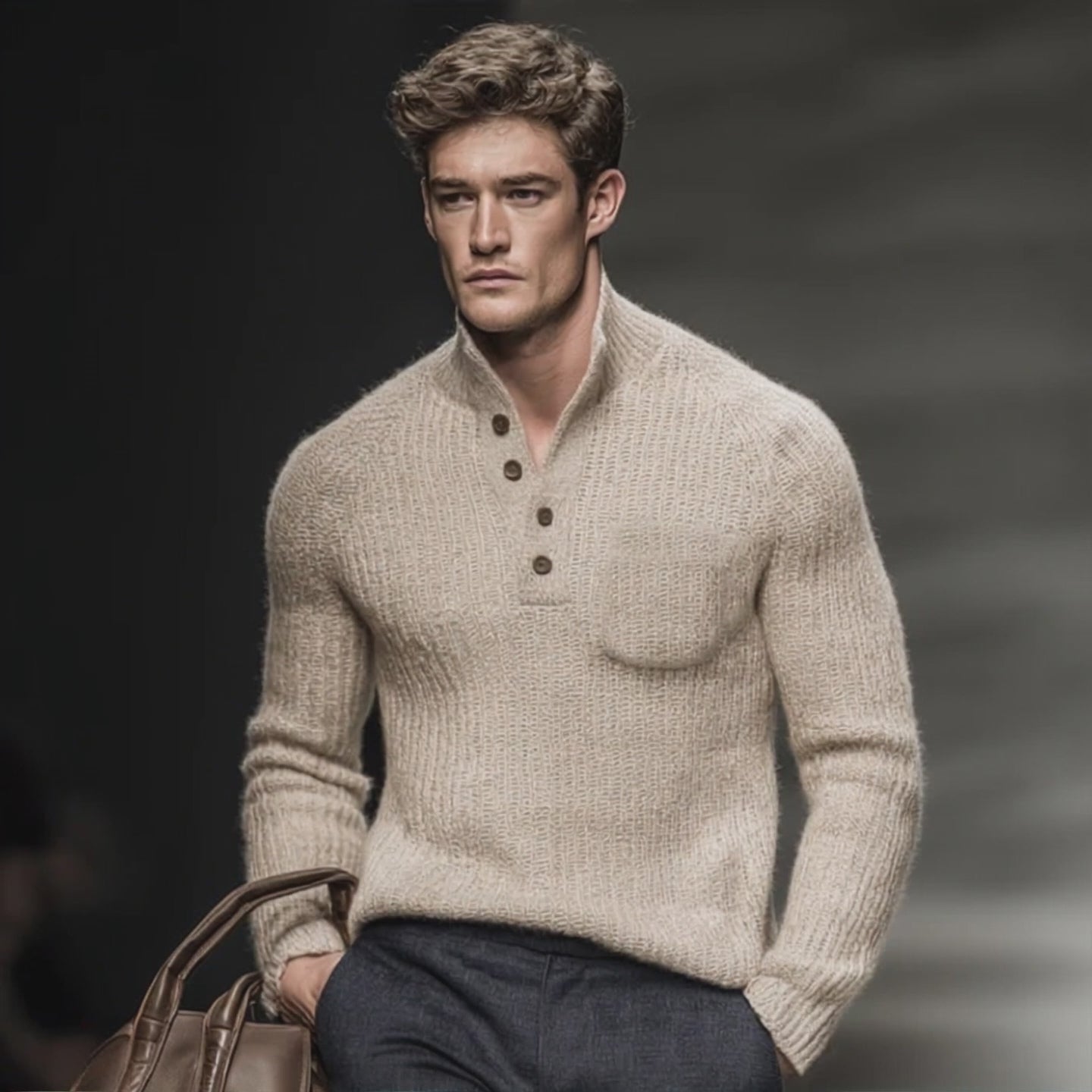Men's Vintage Casual Knit Henley Neck Pullover Sweater MTA2121J0TO