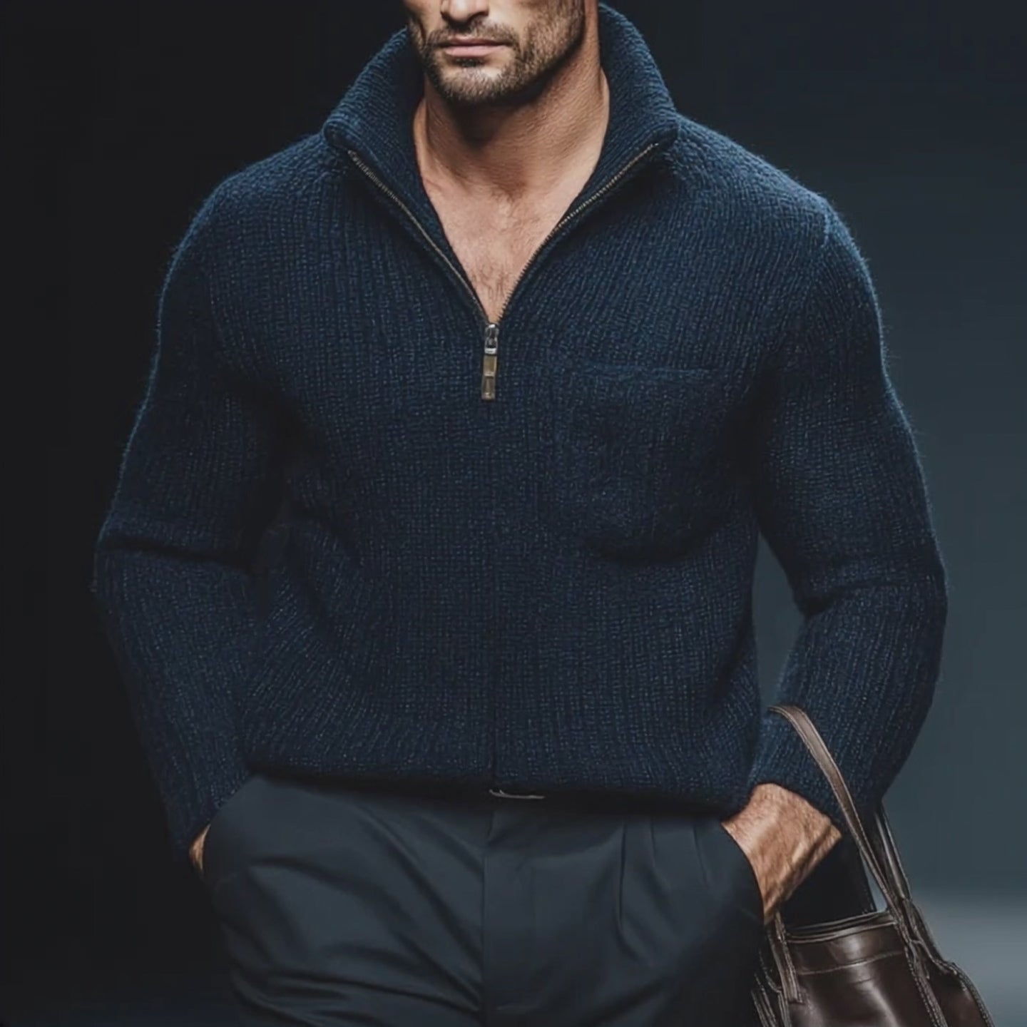 Men's Contrasting Color Casual Stand Collar Knitted Sweater MTA2237J7X