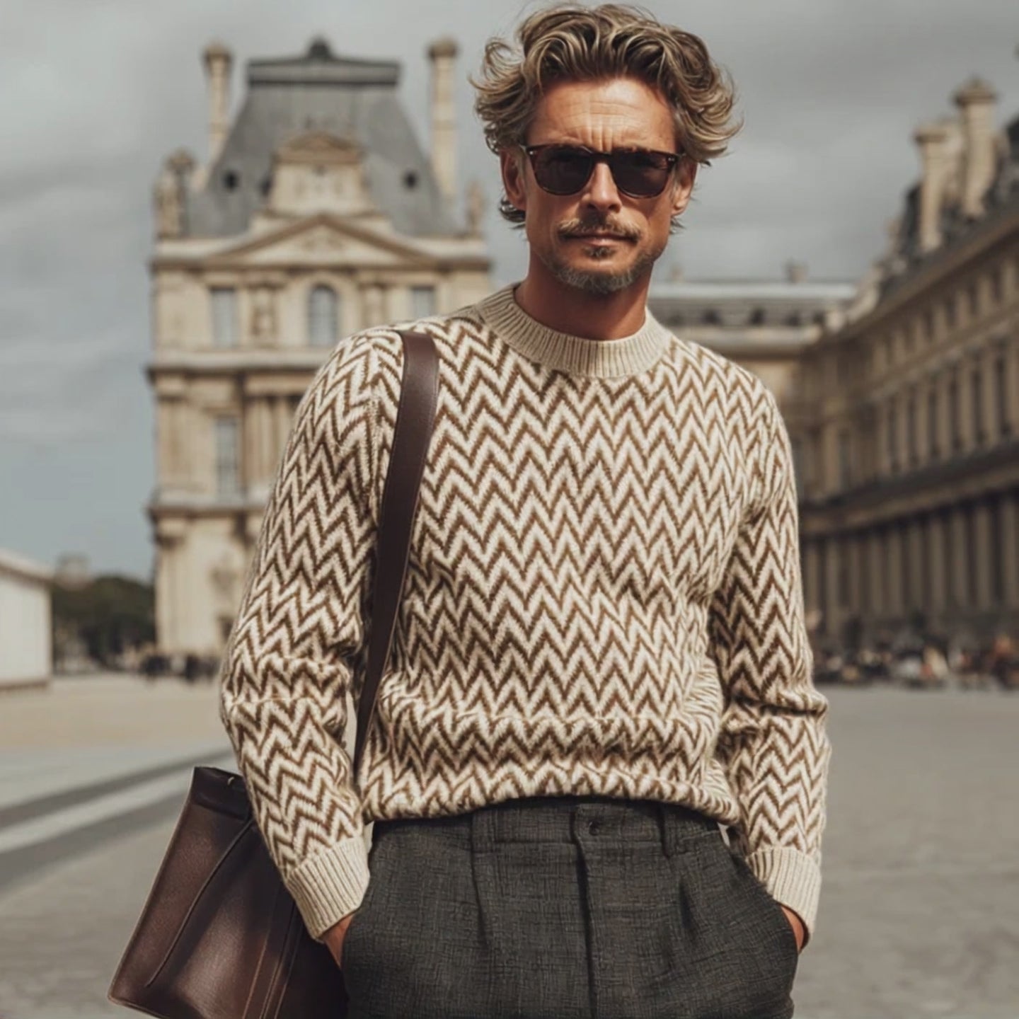 Men's Vintage Zigzag Colorblock Jacquard Crew Neck Sweater MTA2192J2U