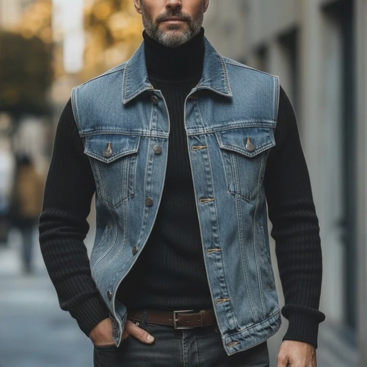 Chaleco vaquero con solapa retro para hombre 41696369X