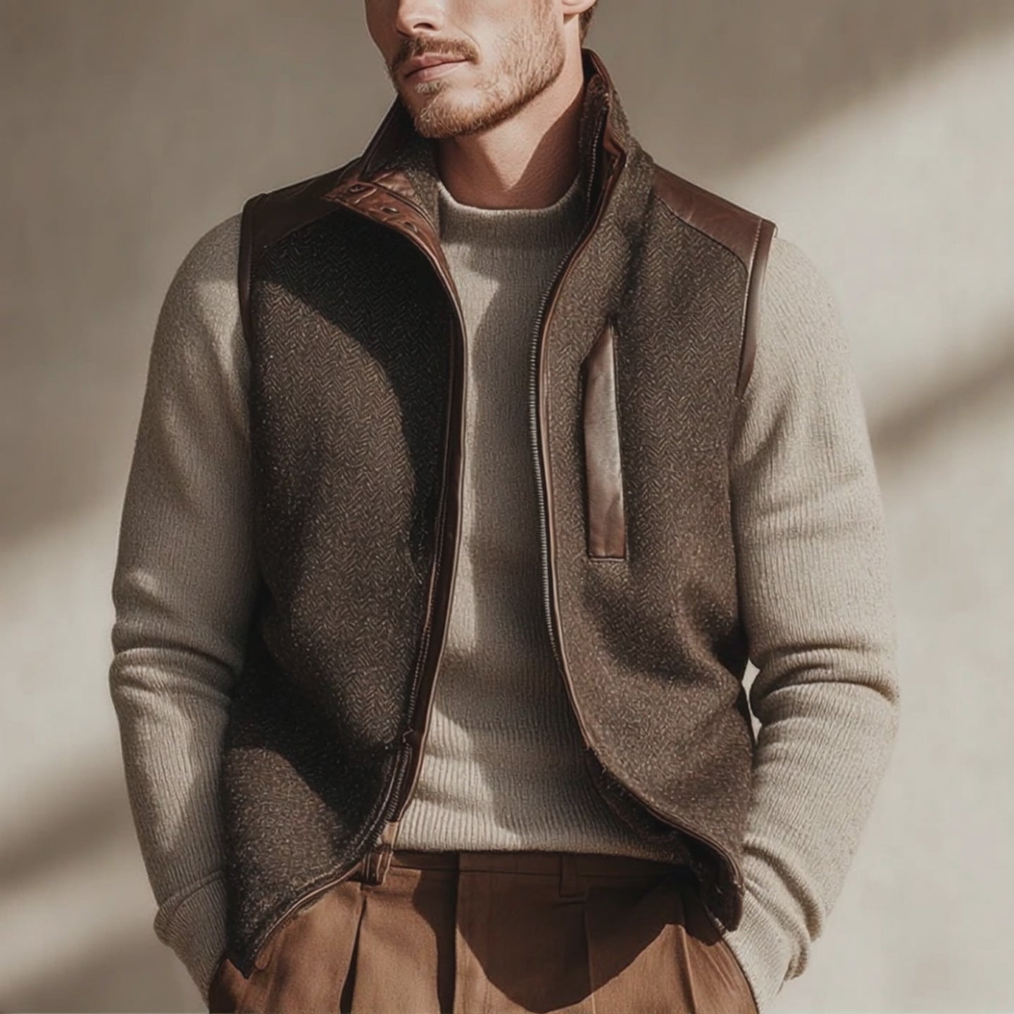 Men's Winter Retro Herringbone Faux Wool Vest MTA1442J1P