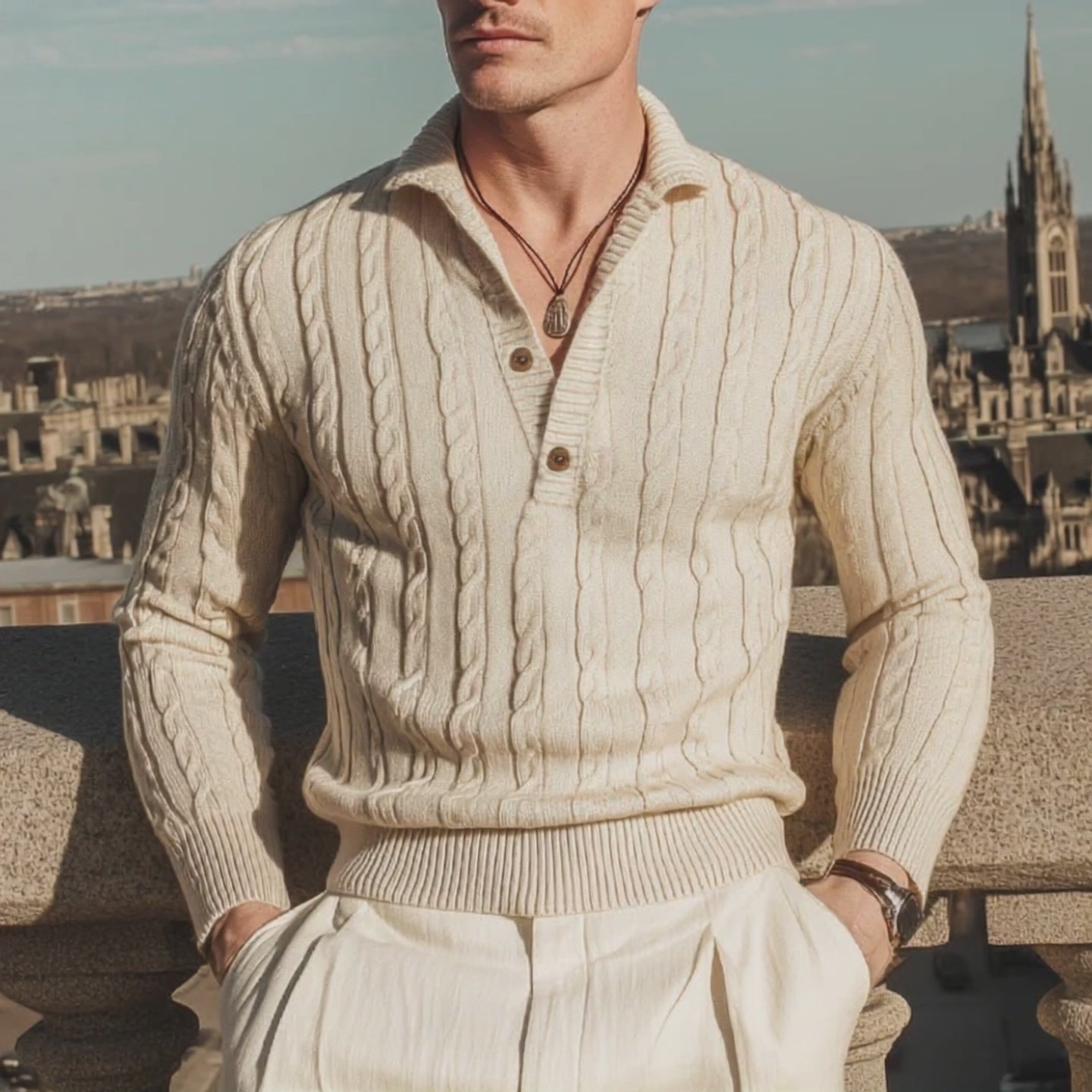 Men's Business Classic Jacquard Button Collar Slim Sweater