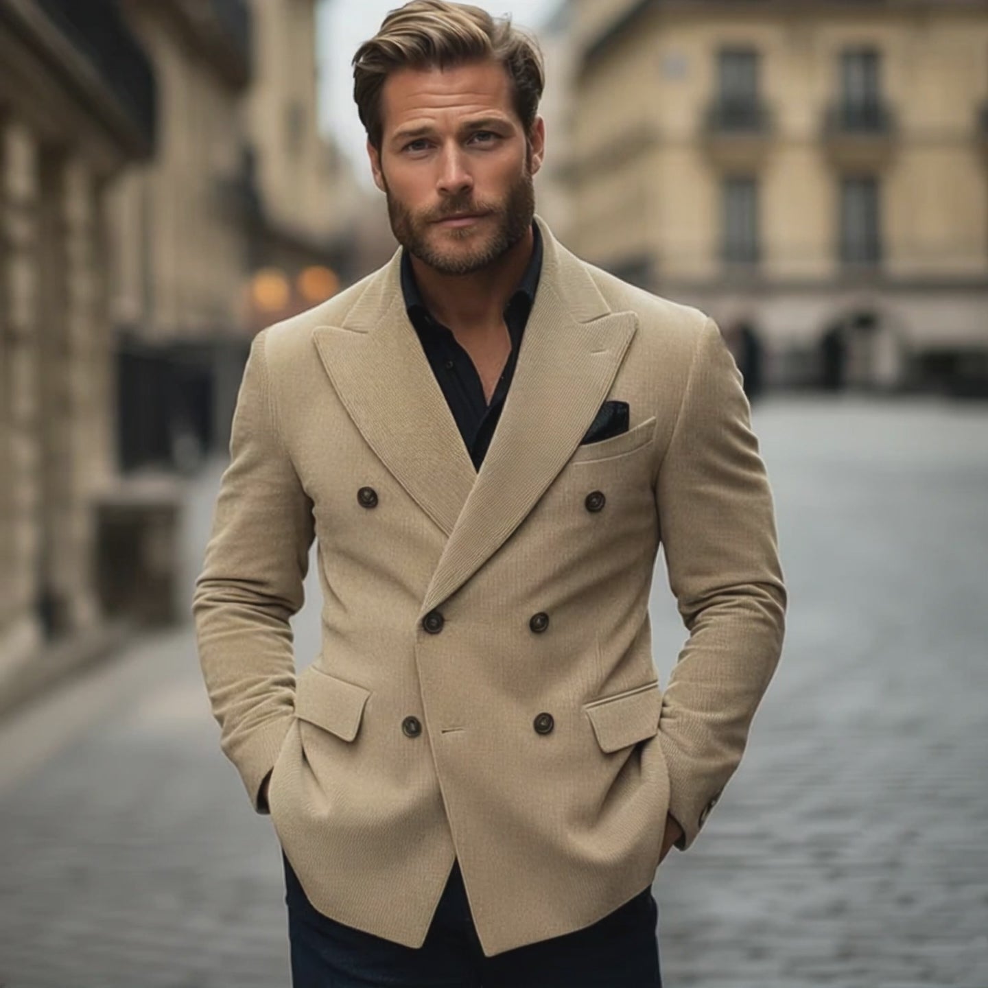 Elevate your business wardrobe with our Men's Classic Business Light Khaki Corduroy Double-breasted Double-vent Blazer. This blazer, crafted from premium corduroy, merges classic charm with modern sophistication, making it a versatile addition to any gentleman's attire.