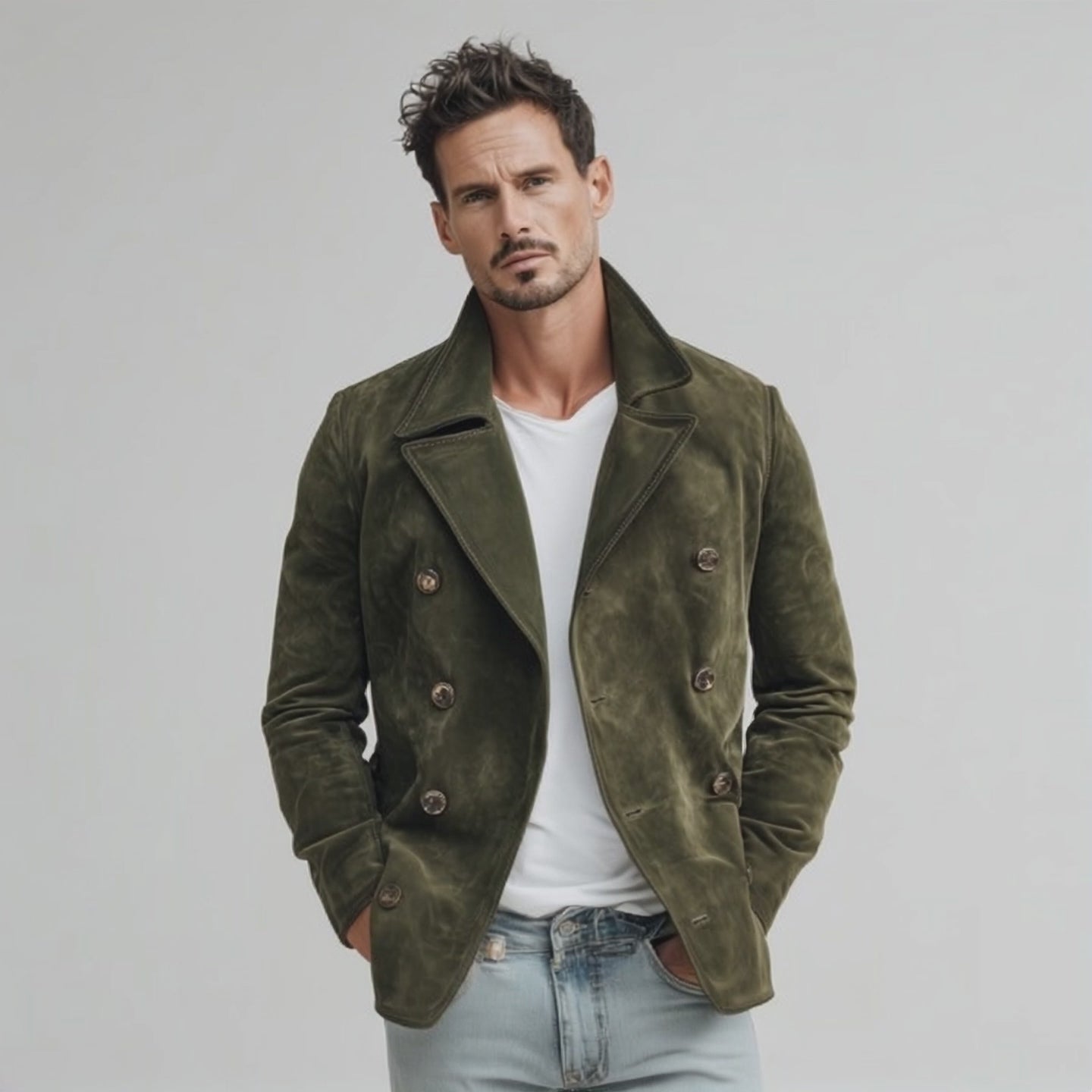 The Men’s Classic Casual Lapel Suede Double Breasted Jacket fuses luxurious suede texture with a refined double-breasted silhouette to deliver a versatile outerwear piece that bridges casual ease and elevated tailoring. The lapel detailing adds a sophisticated touch to a bold, structured jacket, while the double-breasted front provides a crisp, classic line. The suede exterior offers tactile depth and a premium hand, complemented by durable hardware and thoughtful construction to ensure reliable daily wear. This jacket is designed to elevate layered outfits—from tees to knitwear—creating a polished look with a touch of vintage-inspired refinement.