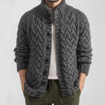 Men's Classic Jacquard Stand Collar Button Knit Cardigan