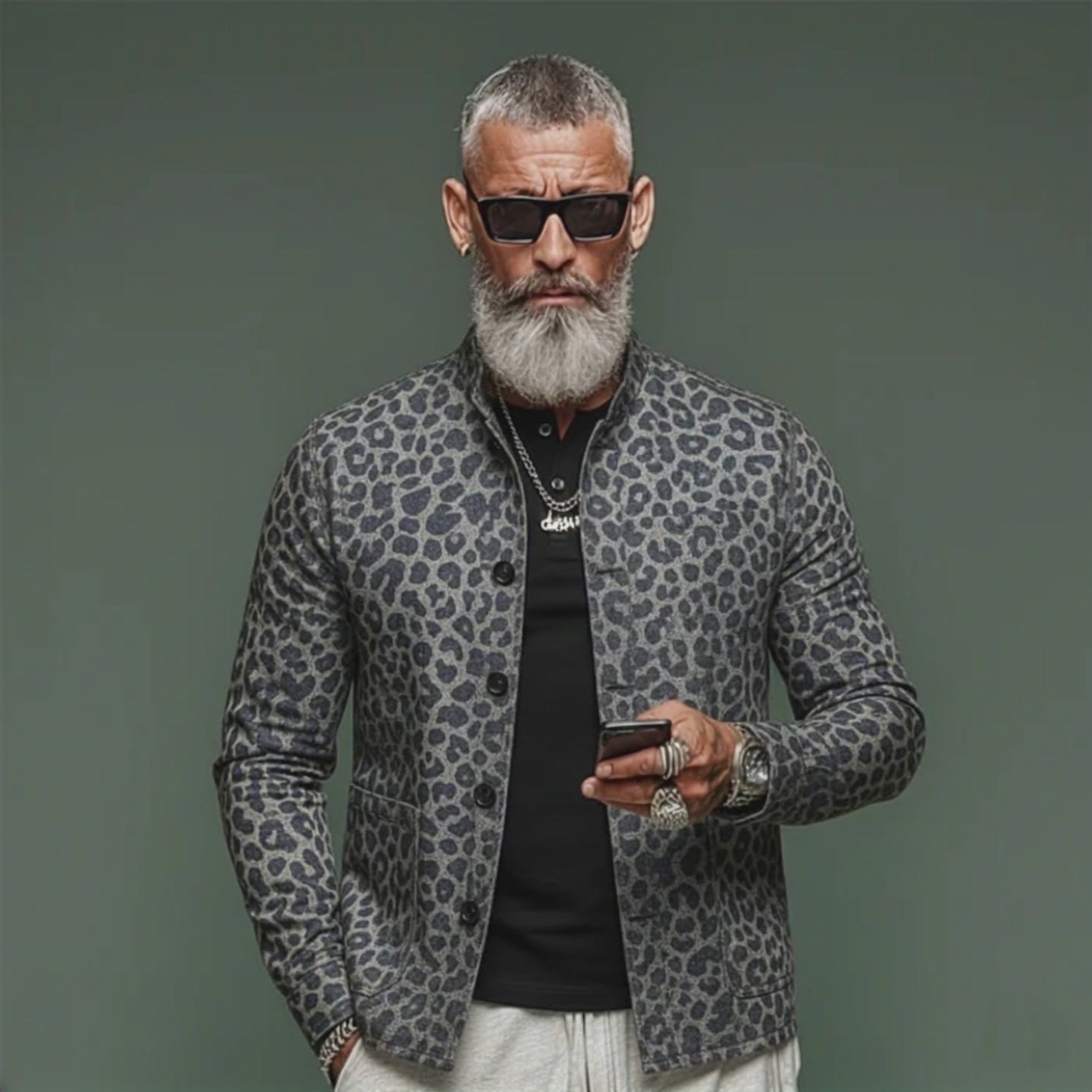 The Men’s Classic Vintage Stand-collar Leopard Print Jacquard Denim Jacket offers a bold, fashion-forward outer layer with rich texture and distinctive detailing. Its denim jacquard construction, leopard motif, and versatile stand-collar design make it a dependable piece for casual to smart-casual outfits across seasonal transitions.