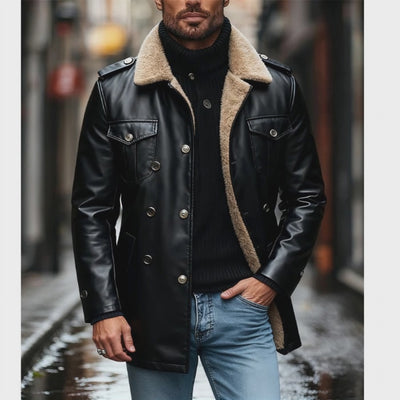 The Men's Lapel Polar Fleece Lining Multi-pocket Mid-length PU Coat is a stylish and functional piece that is perfect for transitional weather. With its combination of warmth, practicality, and timeless style, this coat is an excellent choice for the modern man who values both fashion and utility.