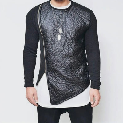 Mejora tu estilo casual con el Camiseta de manga larga con cuello redondo, cremallera y costuras de cuero para hombreEsta pieza única combina un diseño contemporáneo con materiales de alta gama, lo que la convierte en una adición destacada a cualquier guardarropa moderno.