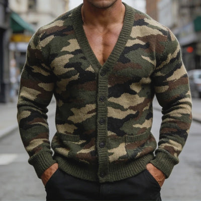 Introducing the Men's Retro Casual Knit Camouflage Button-Up Cardigan, a perfect blend of vintage style and modern comfort. This cardigan features a unique camouflage pattern, adding a touch of edginess to your wardrobe. Made with high-quality knit fabric, it ensures warmth and durability, making it a staple for any season.