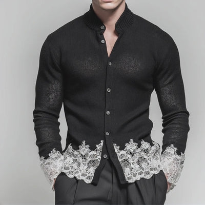 The Men's Retro Casual Knitted Patchwork Lace Stand Collar Button Cardigan, is a sophisticated blend of classic design and contemporary fashion. This cardigan is crafted to enhance your wardrobe with its unique details and comfortable fit.