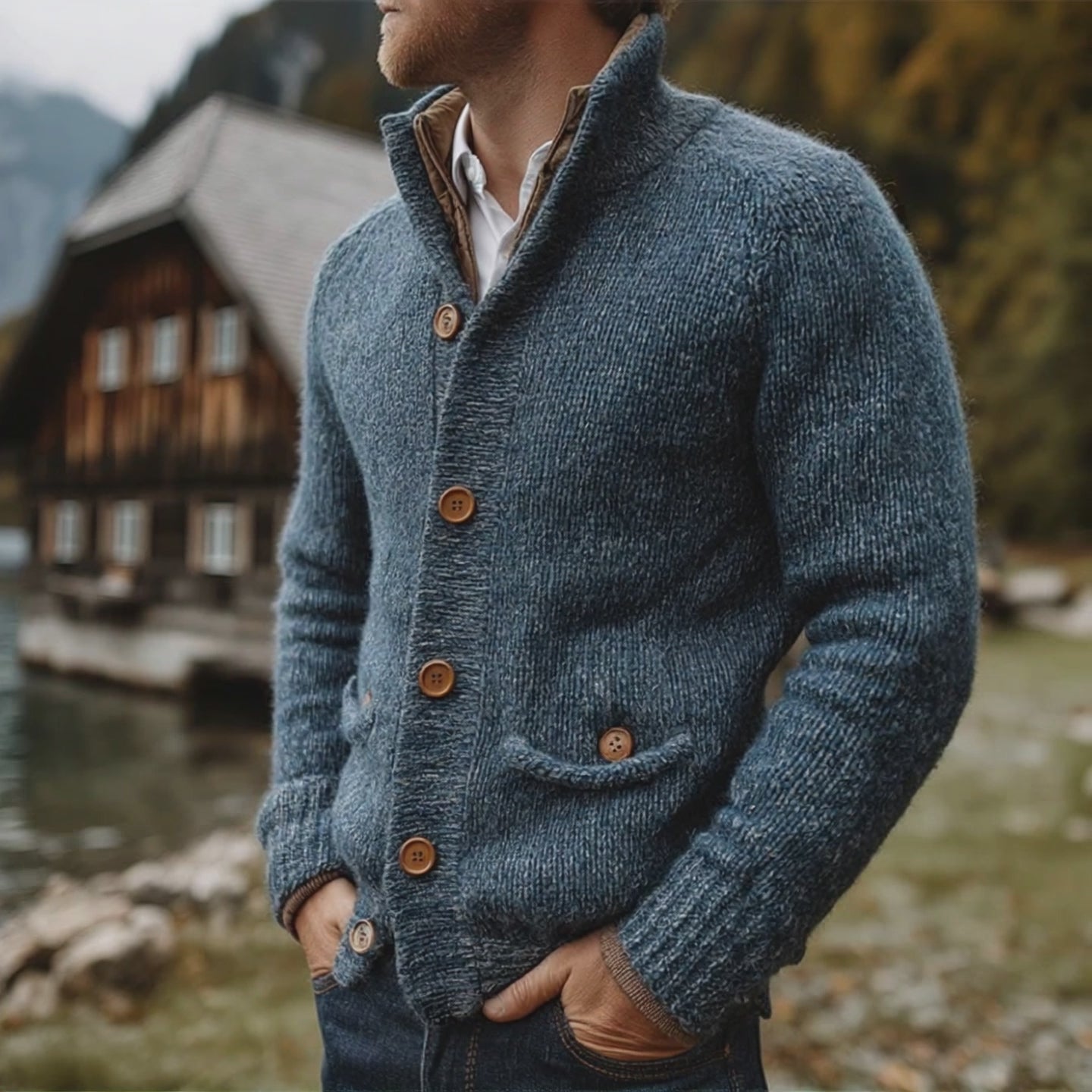 In summary, the Men's Retro Casual Knitted Stand Collar Button Cardigan is a timeless garment that merges retro style with modern comfort. Whether dressing up or down, it will become a staple piece in your wardrobe that complements a variety of looks and offers practical warmth throughout the seasons.