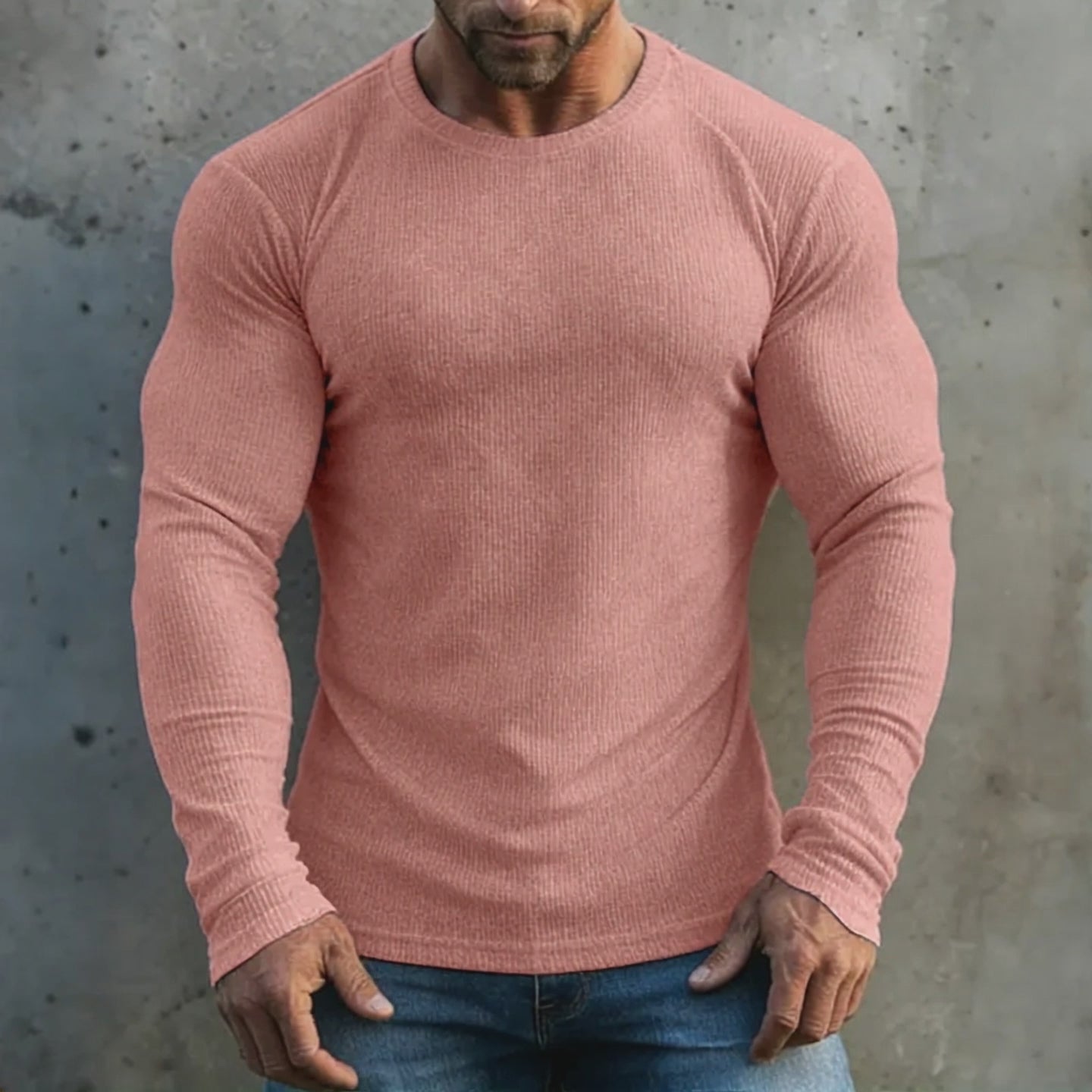 Men's Retro Casual Solid Color Ribbed Crew Neck Long Sleeve T-Shirt MTZ1191B9TO