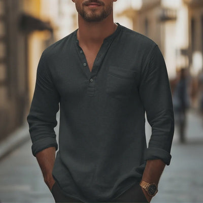 The Men's Spring Fashion Pure Cotton Long-sleeved Henley Shirt is a must-have staple for any wardrobe, blending comfort with style effortlessly. Whether you're stepping out for a casual day or dressing up for a smarter occasion, this shirt provides the perfect balance of casual elegance.