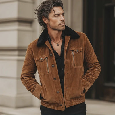 The Men's Urban Caramel Corduroy Fur Collar Jacket is the epitome of style and functionality, designed for the modern man who values both comfort and elegance. Crafted from premium quality corduroy, this jacket offers a unique combination of durability and softness.