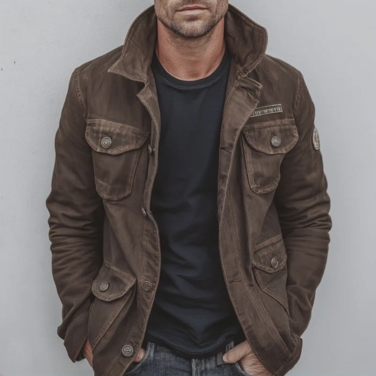 Product Name: Men's Vintage Casual Cotton Washed Distressed Multi-Pocket Button Jacket