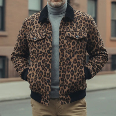 Men's Vintage Casual Leopard Print Lapel Jacket MTA2406I0TO