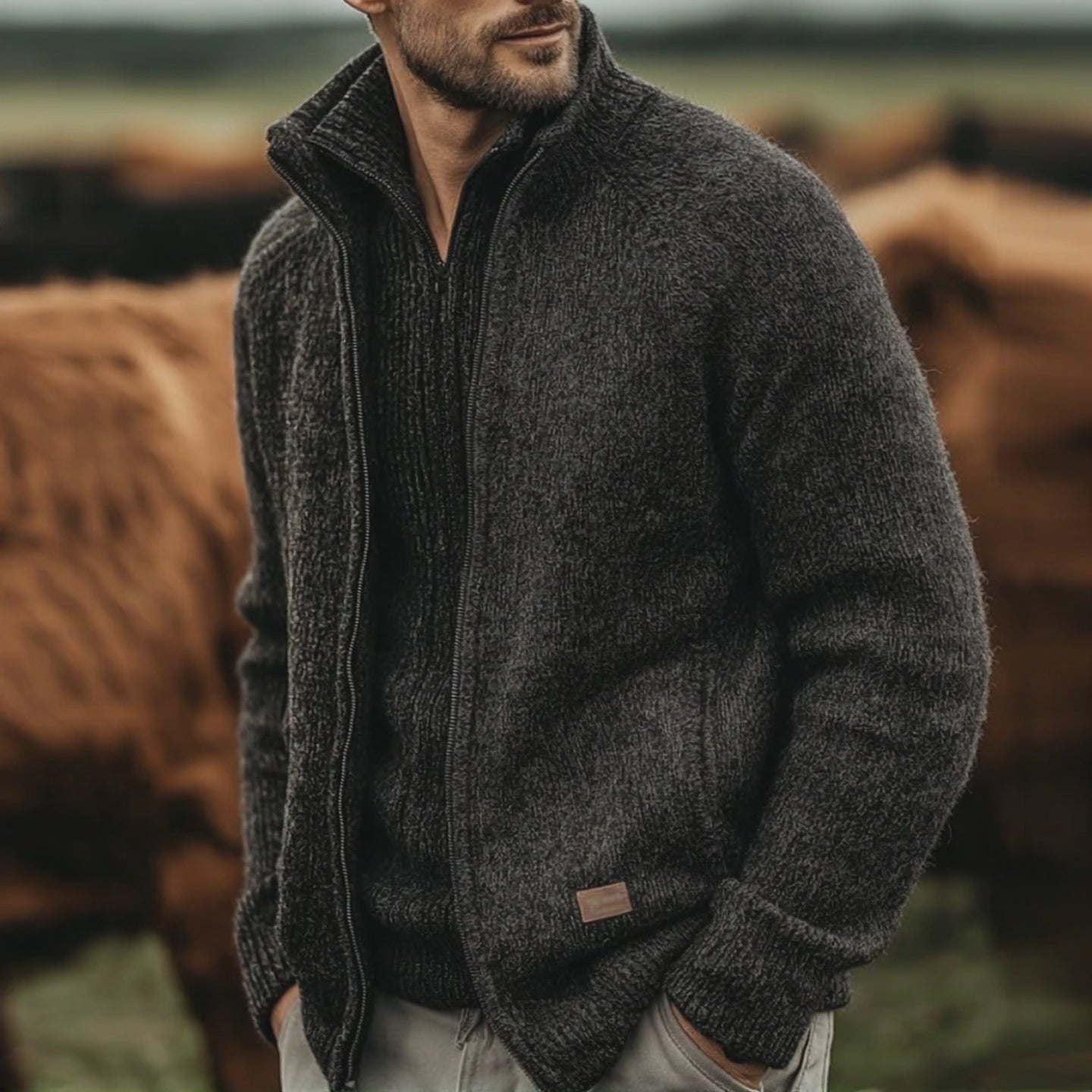 This Men's Vintage Casual Ranch Knit Stand Collar Zipper Cardigan Jacket is versatile enough for both casual and slightly formal settings. Its vintage charm combined with practical design elements makes it a must-have addition for those seeking a distinctive and elegant style. Experience comfort and sophistication with this standout piece.
