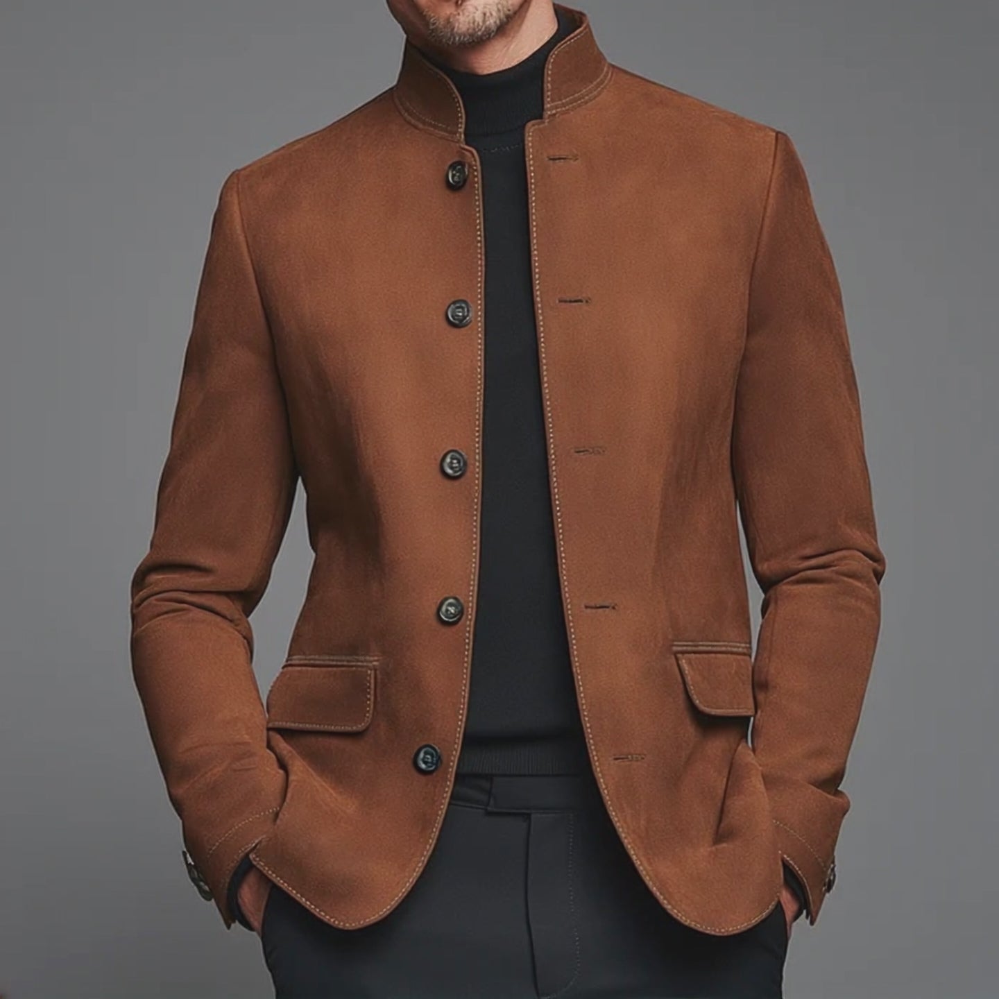 The Men's Vintage Casual Suede Stand Collar Single Breasted Jacket is a stylish addition for any wardrobe. Crafted from premium quality suede, this jacket exudes a classic charm while offering modern comfort. The stand collar adds a touch of sophistication and keeps you warm on chilly days. The single-breasted design gives it a timeless appeal, making it suitable for various occasions.
