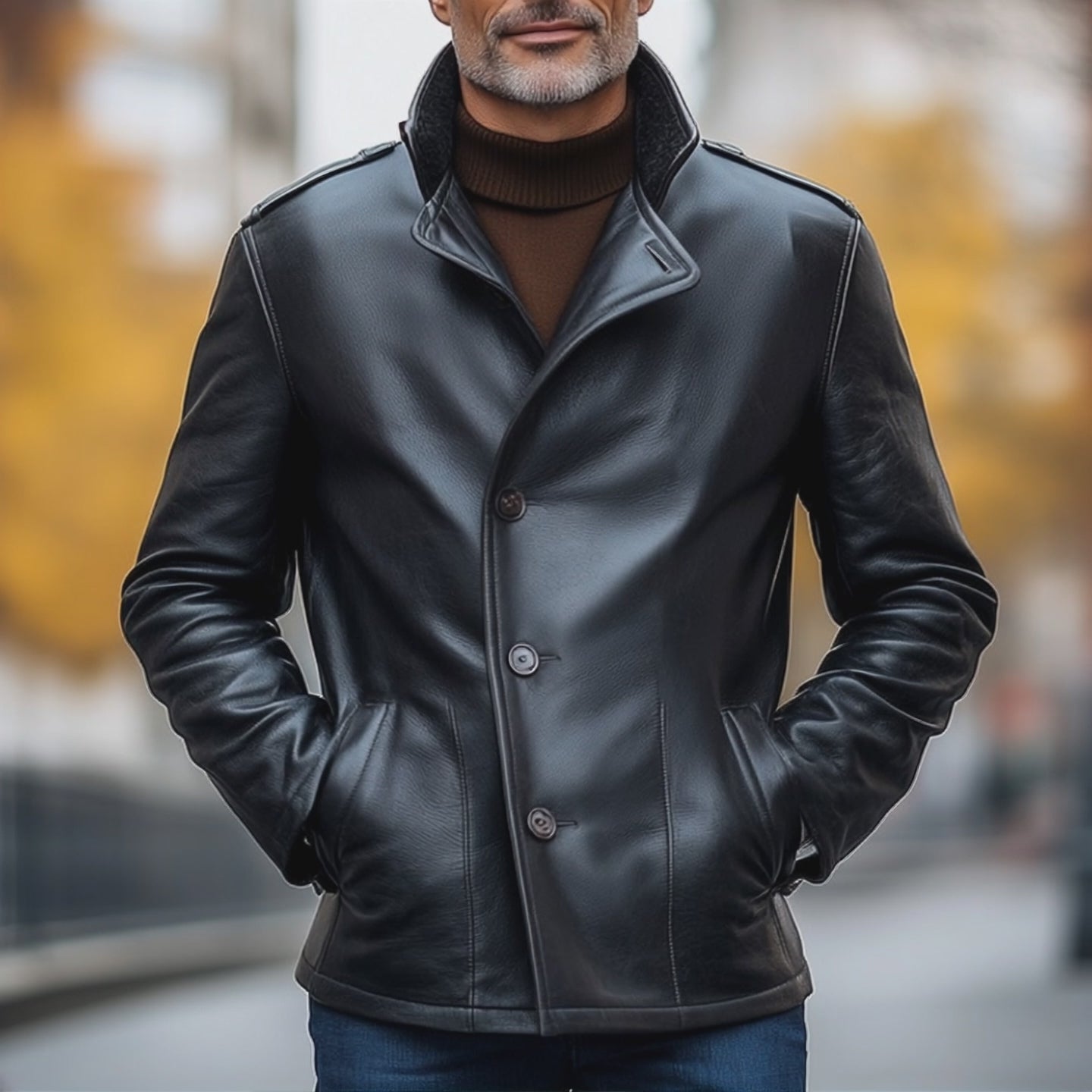 The Men's Vintage Simple Stand-collar PU Faux Leather Button-up Jacket is a stylish and versatile piece, perfect for adding a classic touch to your wardrobe. This jacket features a stand-collar design with a sleek button-up front, offering a vintage yet timeless look that enhances any outfit. Made from high-quality PU faux leather, it offers the authentic look and feel of genuine leather without the maintenance or price.