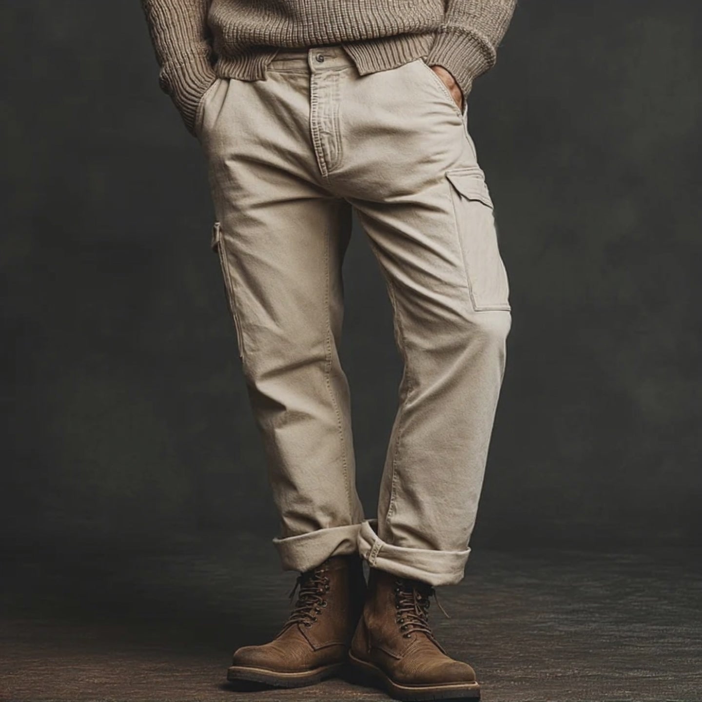 Men's Classic Beige Cotton Blend Straight Leg Cargo Pants MTA3068J4U