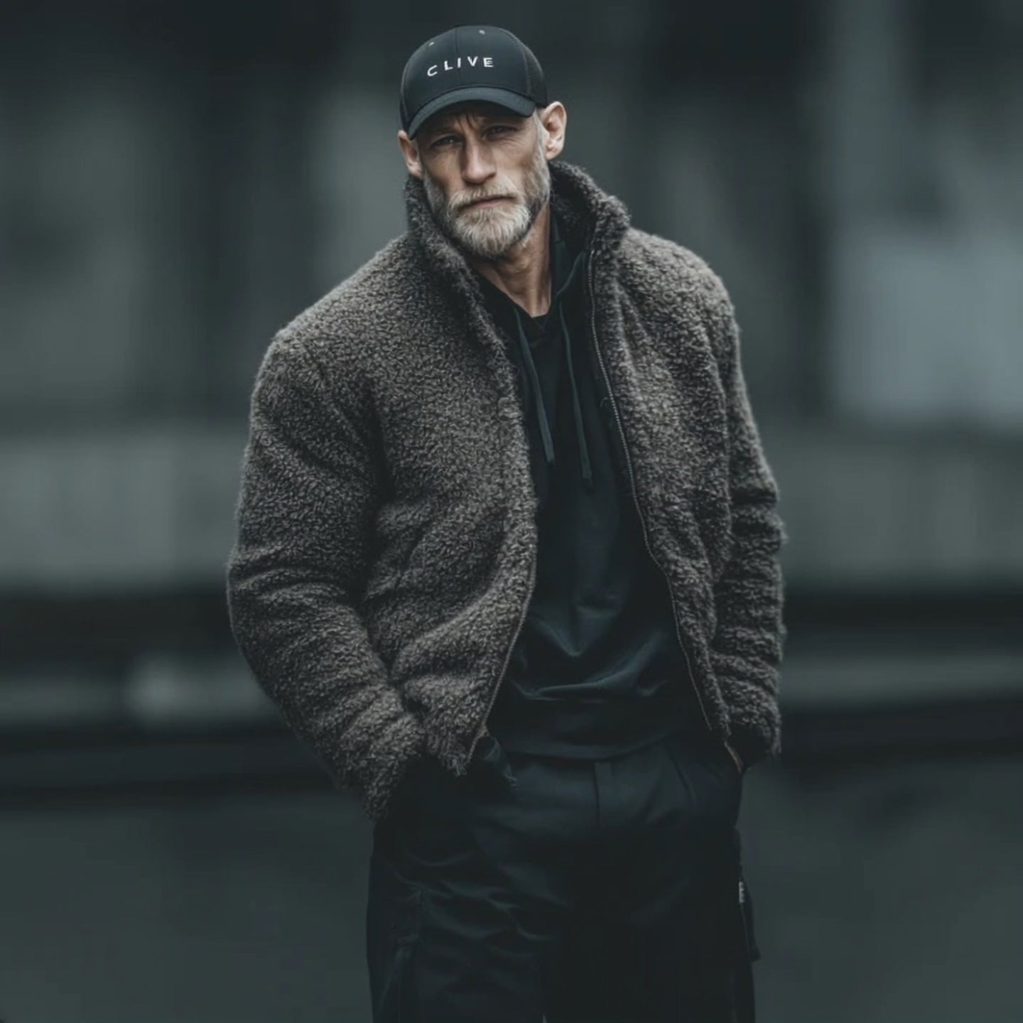 Men's Classic Casual Stand Collar Fleece Zip-Up Jacket MTA3068J1K