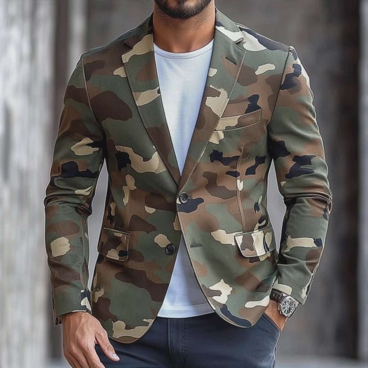Blazer vintage camouflage à simple boutonnage pour homme 91672881X