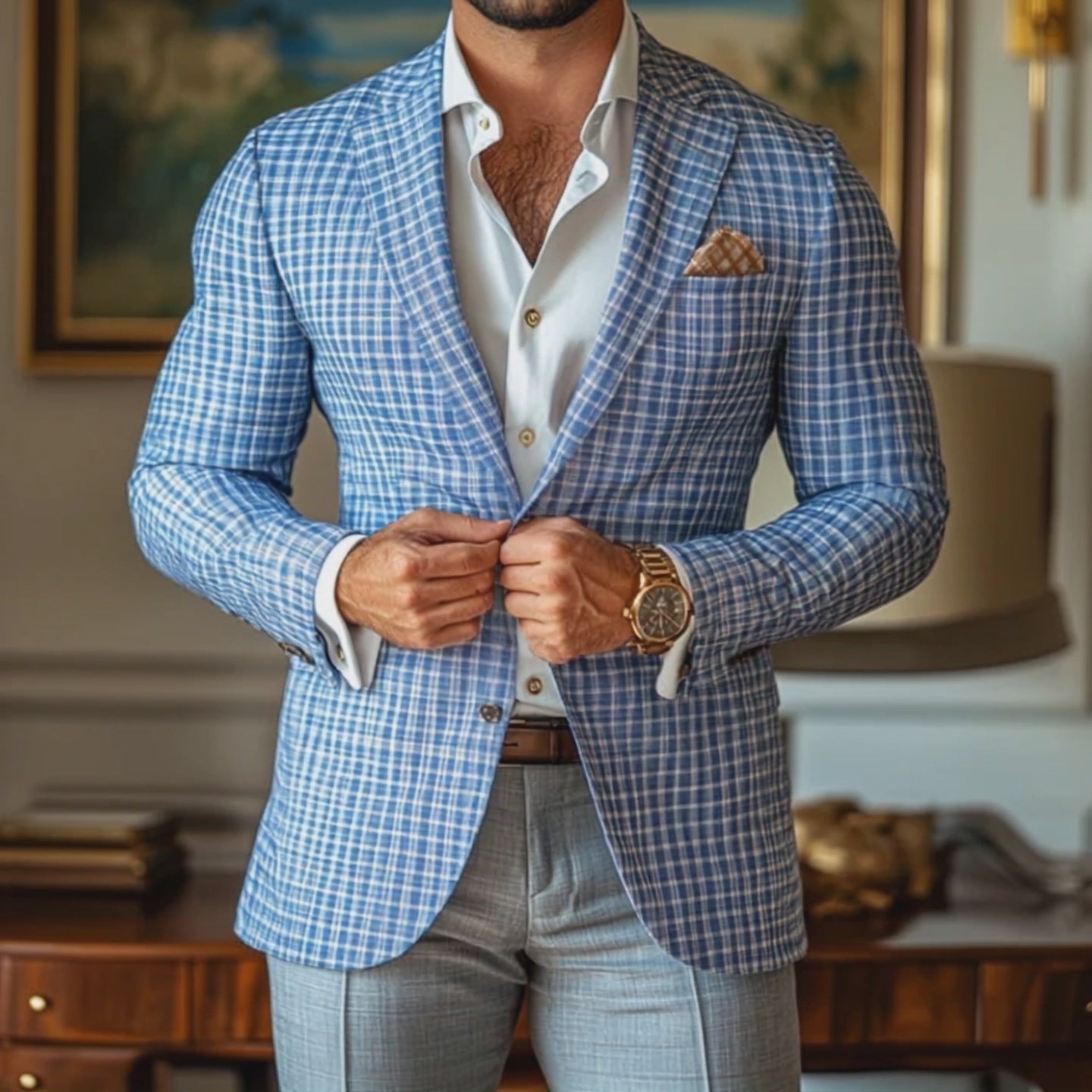 【24-hour shipping out】Men's Fashion Spring Summer Checked Notch Lapel Two Buttons Blazer 27493292Z