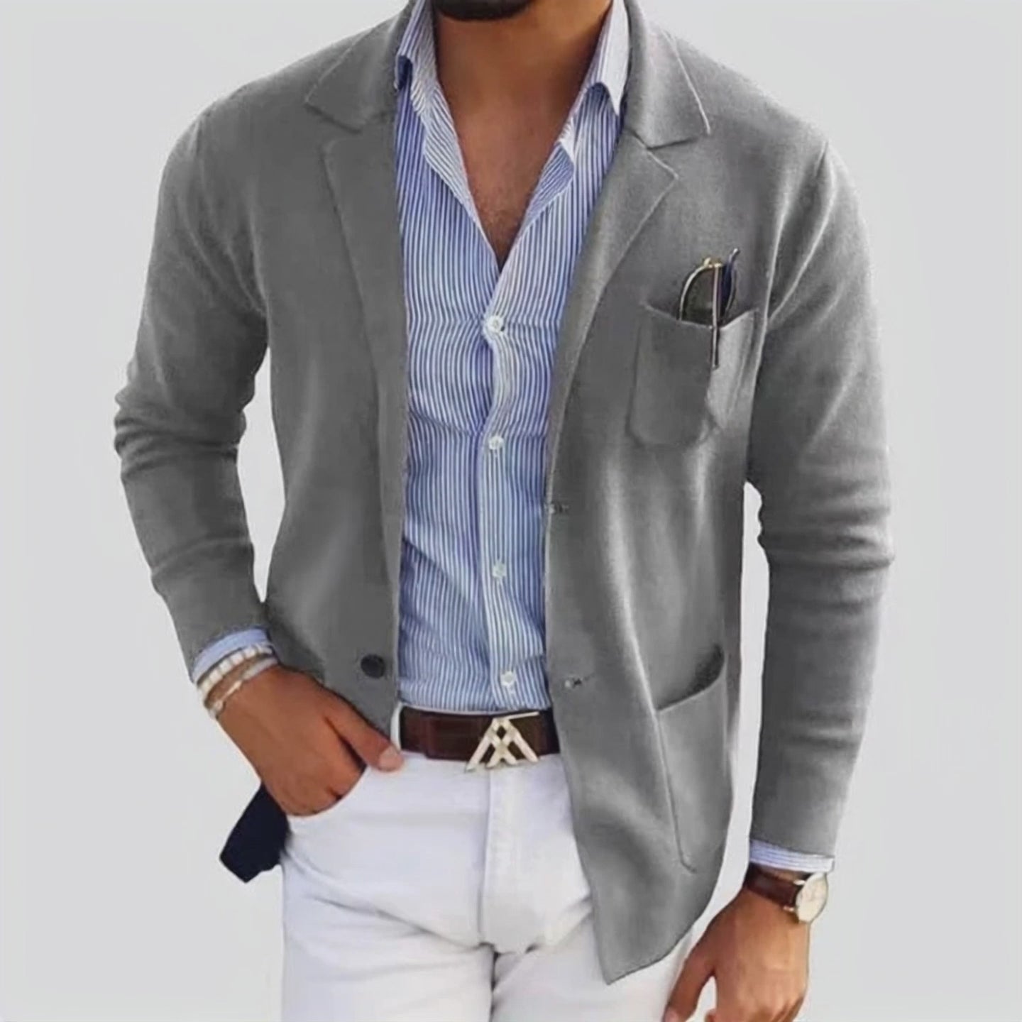 Economisez 1%【Expédition 24h/24】Blazer en tricot à simple boutonnage à revers cranté décontracté pour hommes 24243077M