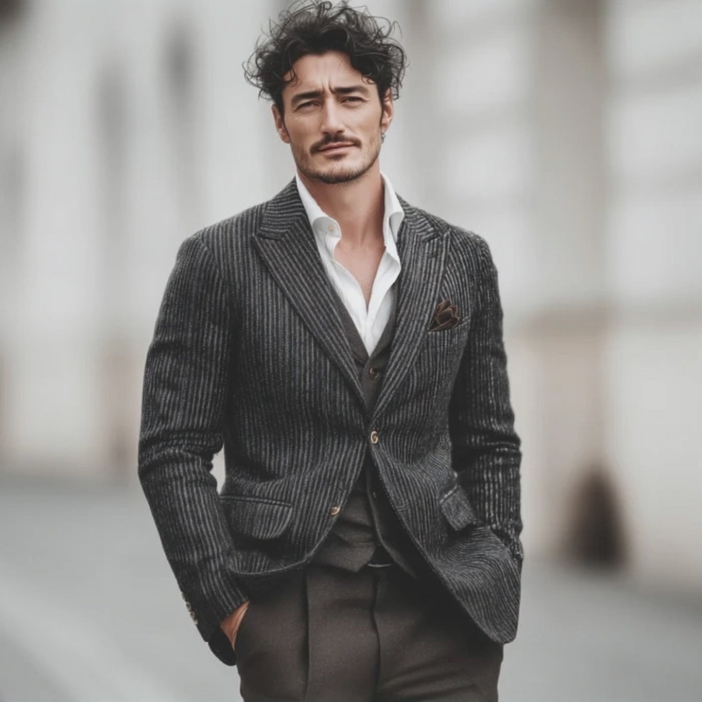 Men's Retro Casual Striped Blazer MTA1582I7TO