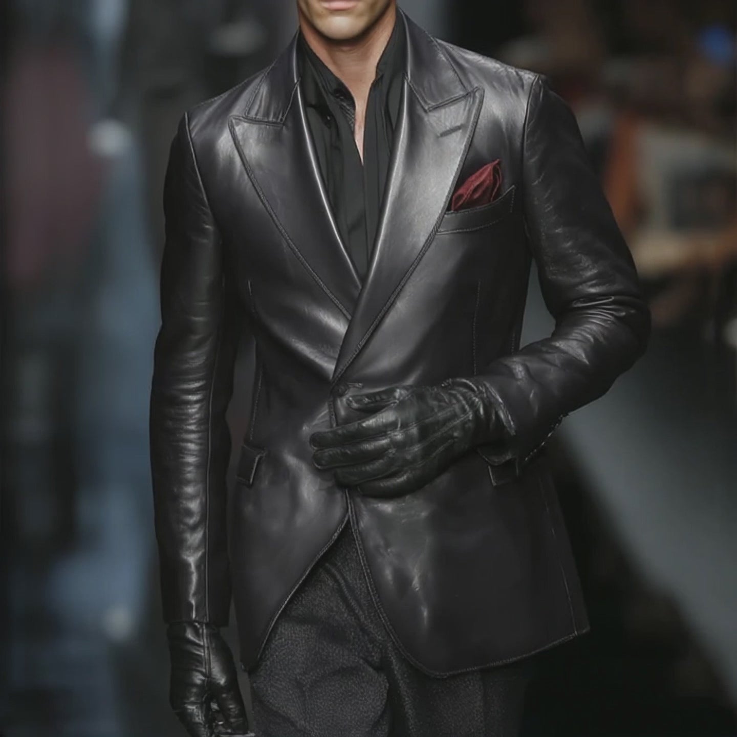 Men's Solid Color Lapel Casual PU Blazer MTA1924I8X