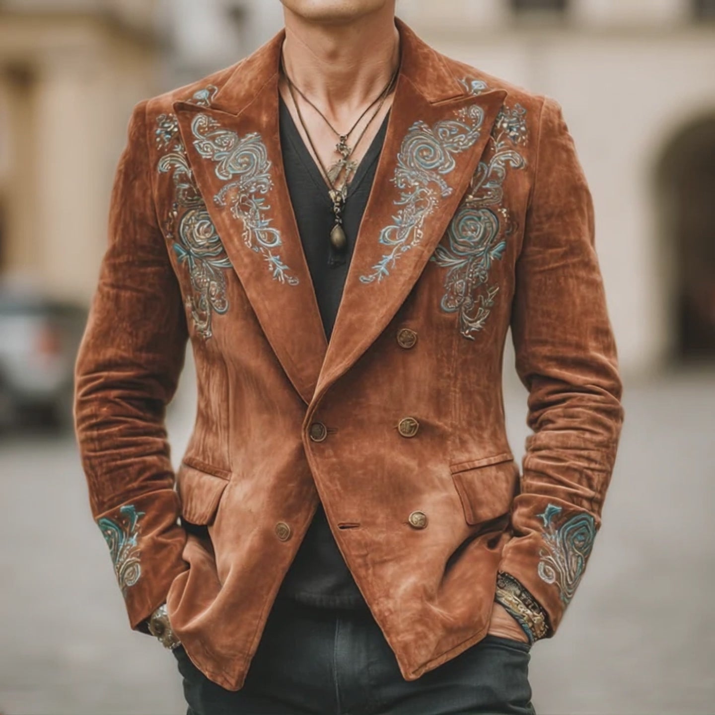 Men's Classic Double-Breasted Embroidered Suede Blazer MTA1007I6U