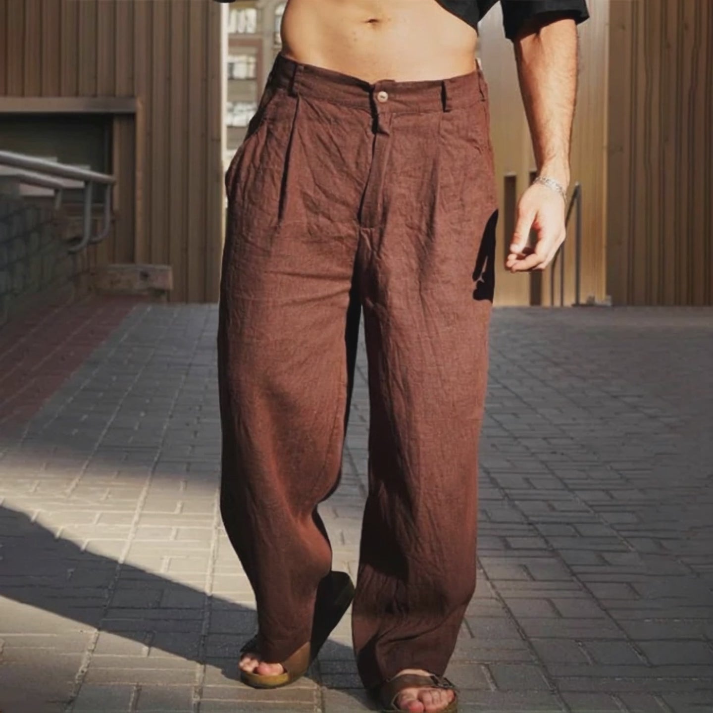 Pantalon décontracté ample en lin mélangé de couleur unie pour hommes 73137836M
