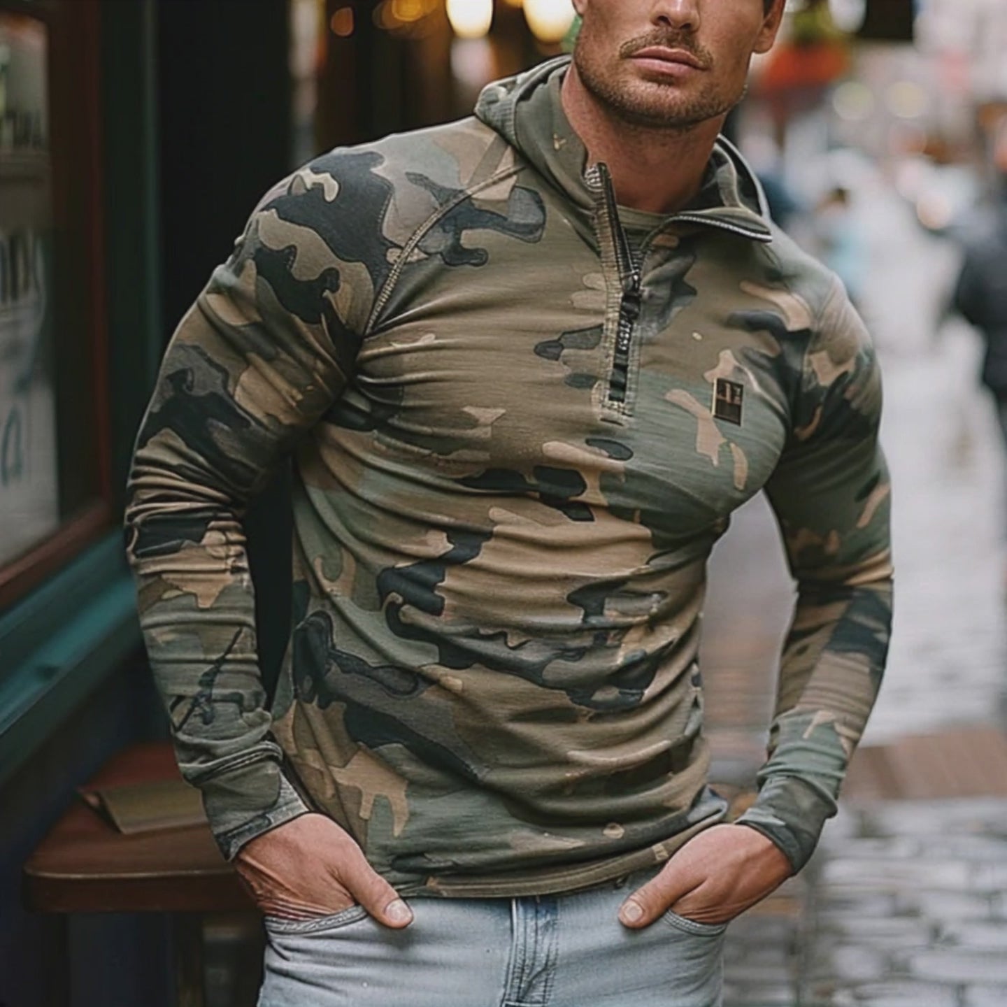 【Expédition 24 heures】Sweat à capuche à manches longues avec poche à rabat et imprimé camouflage vintage pour homme 44391826M