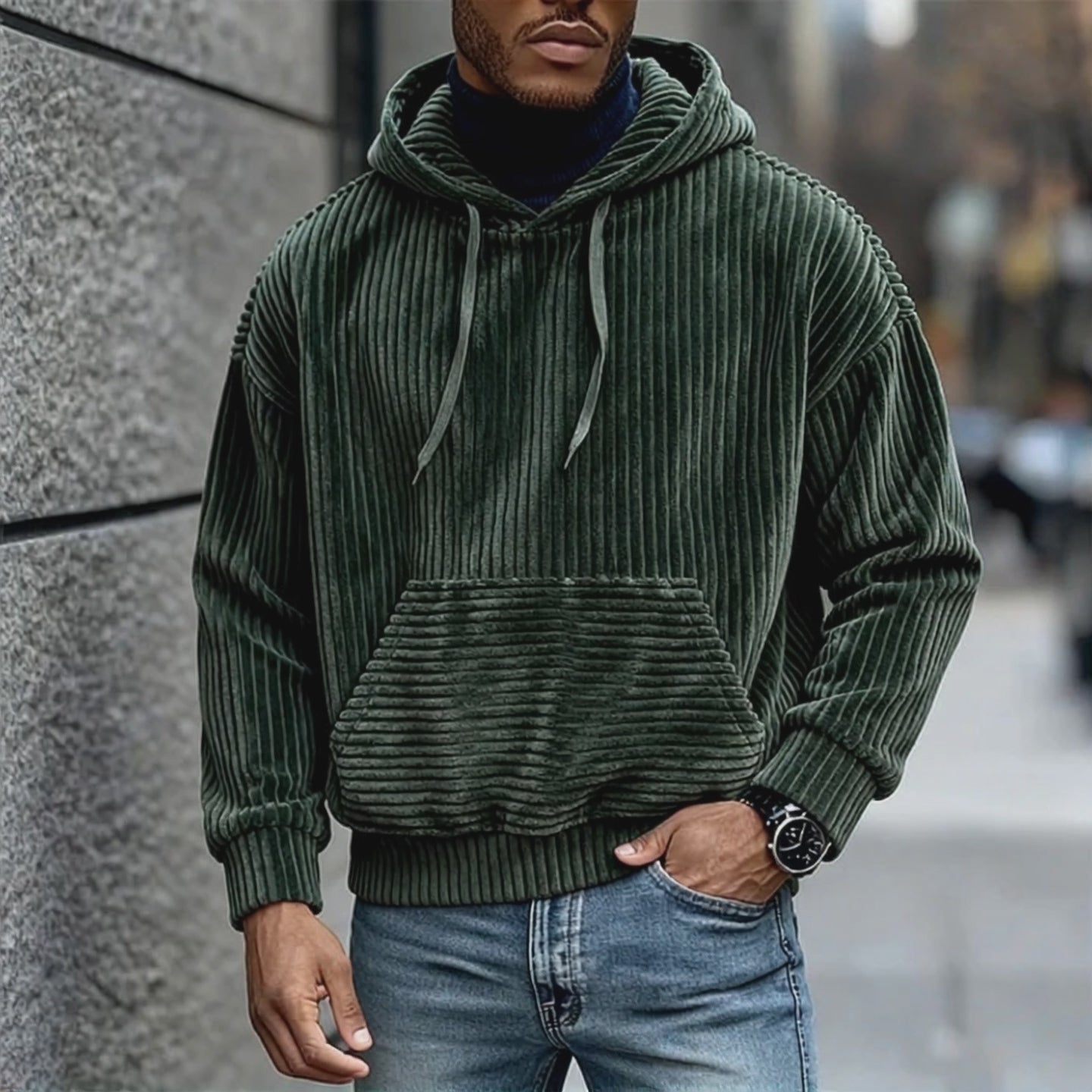 Men's Corduroy Vintage Solid Color Hoodie MTA1601J0X