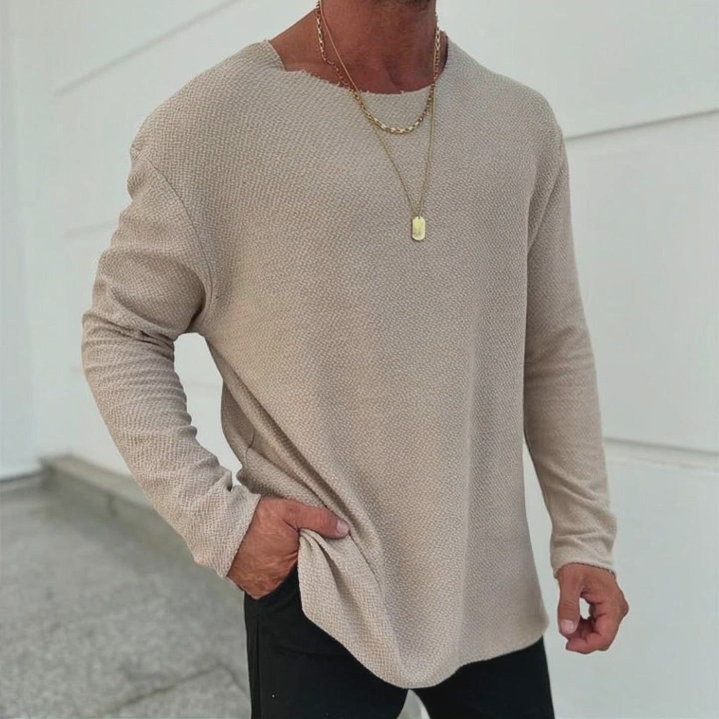 T-shirt à manches longues de couleur unie pour hommes 94029701W