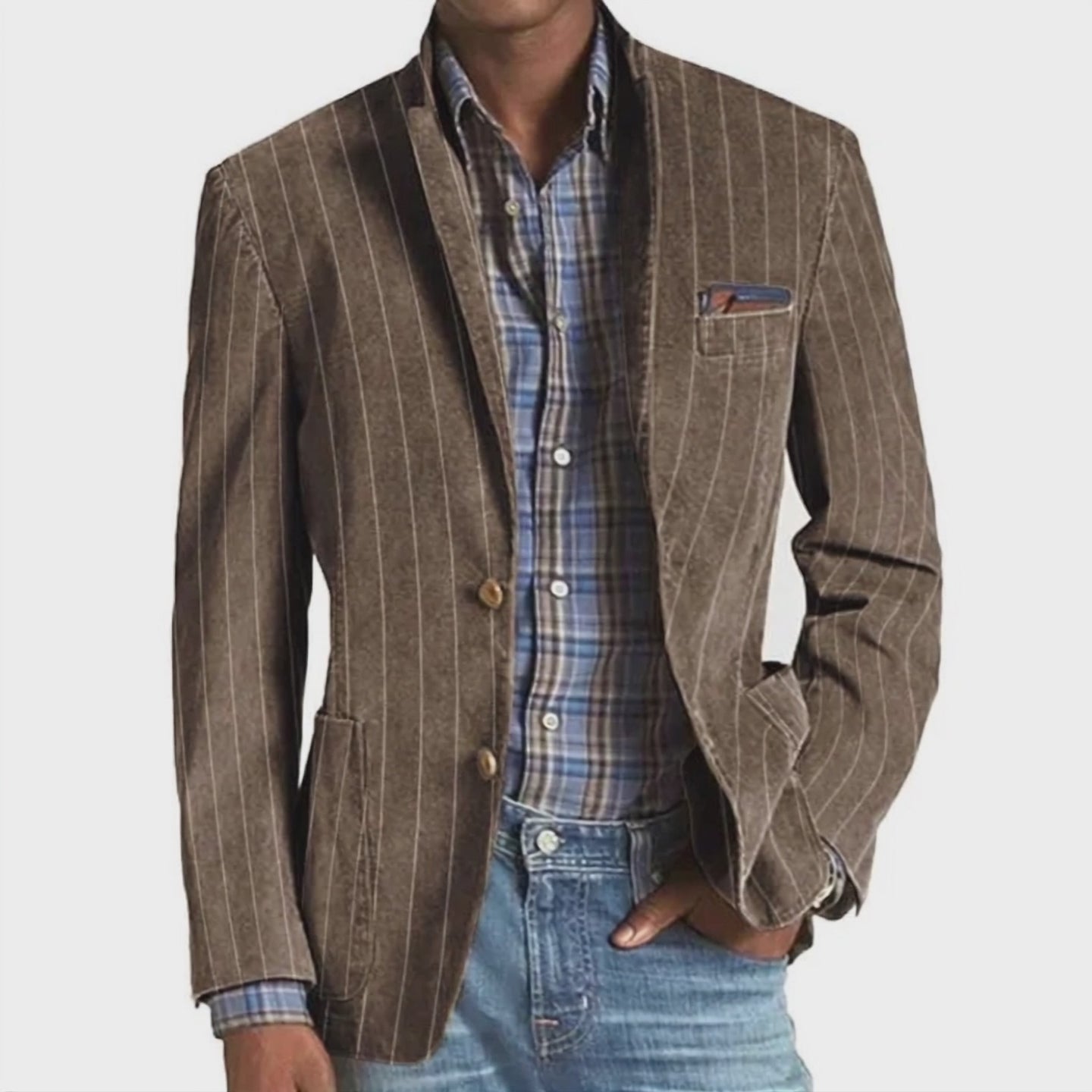 【Expédition en 24 heures】Blazer à simple boutonnage à revers rayé vintage pour homme 53951972Y