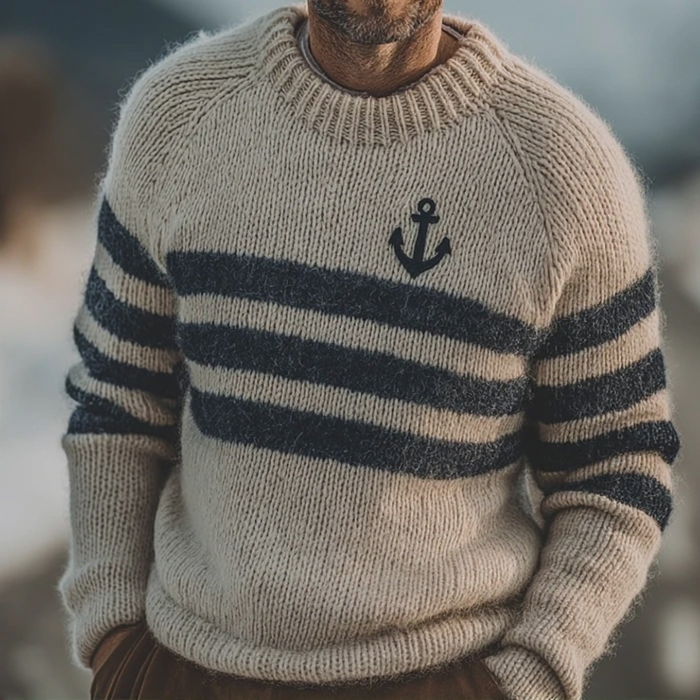 Men's Retro Casual Knitted Anchor Embroidered Crew Neck Sweater MTA0130L6TO