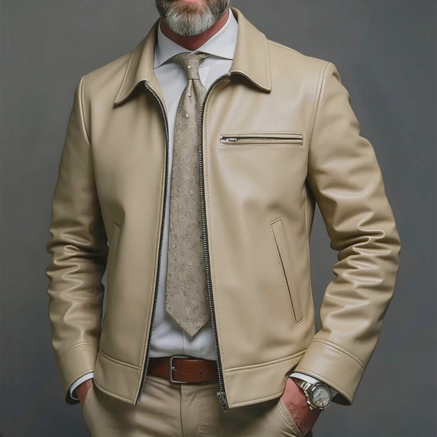 Men's Retro Solid Color Lapel Zipper PU Jacket MTA0455L1X