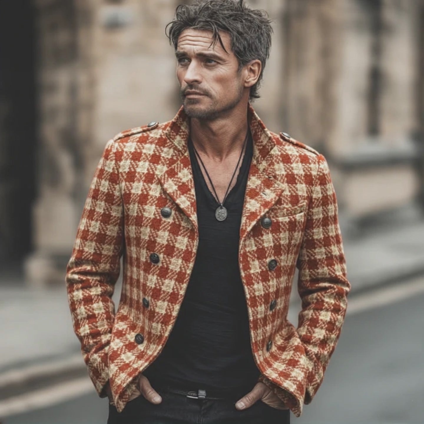 Men's Classic Plaid Double-breasted Notched Lapel Faux Wool Jacket MTA0452L8U