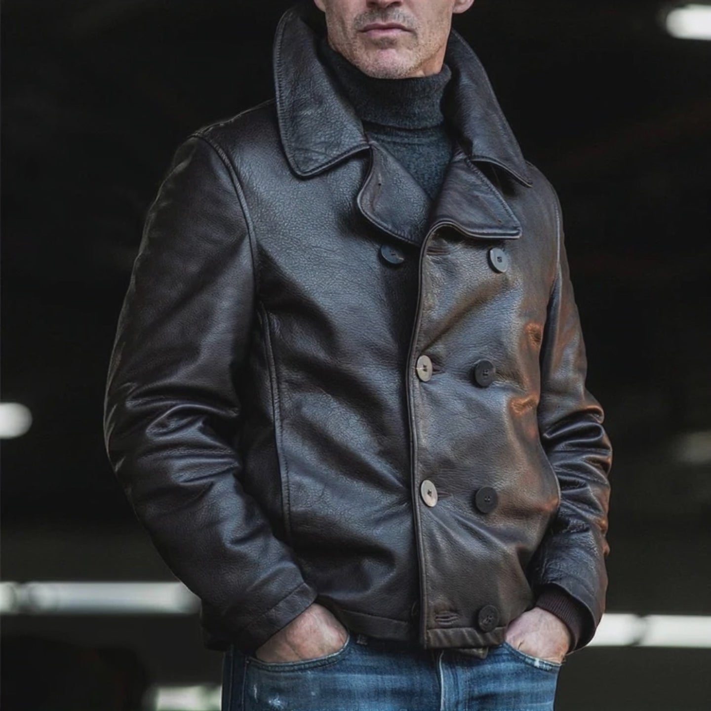 Men's Retro Casual PU Double-Breasted Jacket MTA0522L9TO