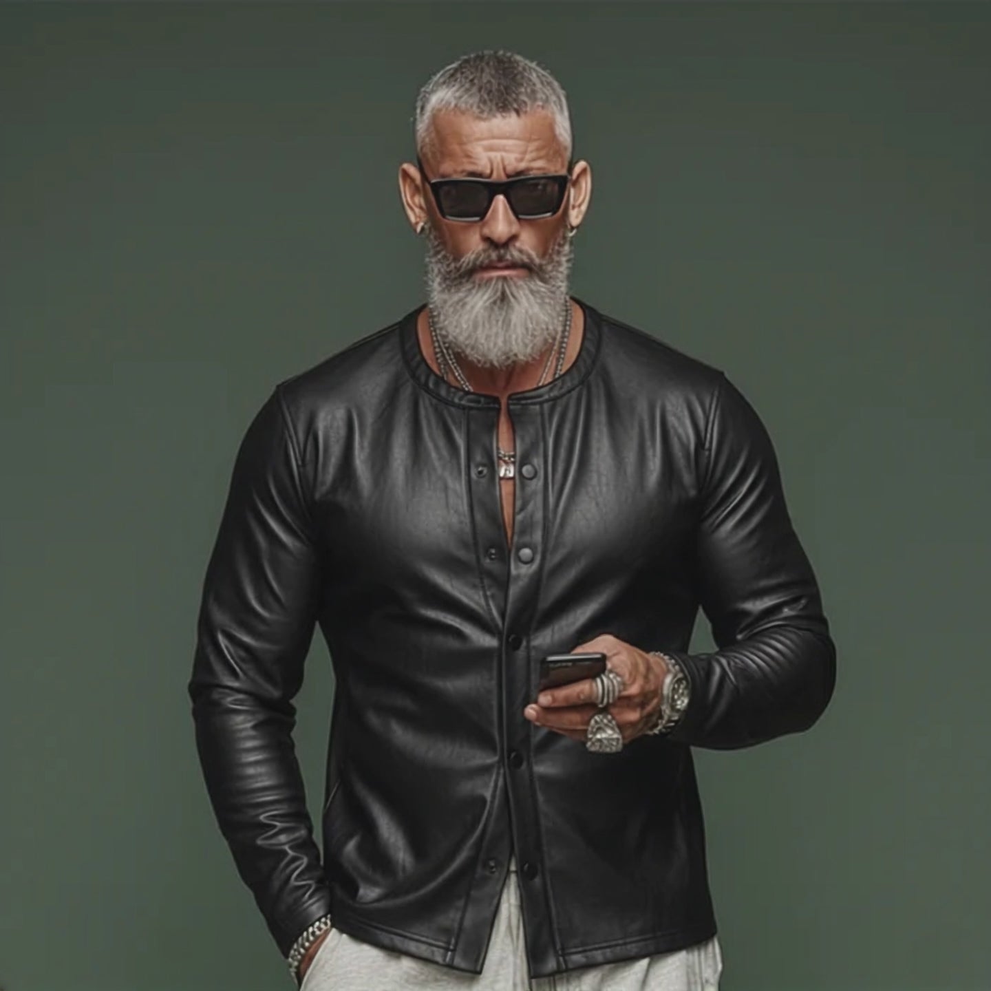Men's Classic Retro Western Style PU Leather Long-sleeved Shirt MTA2296K2K